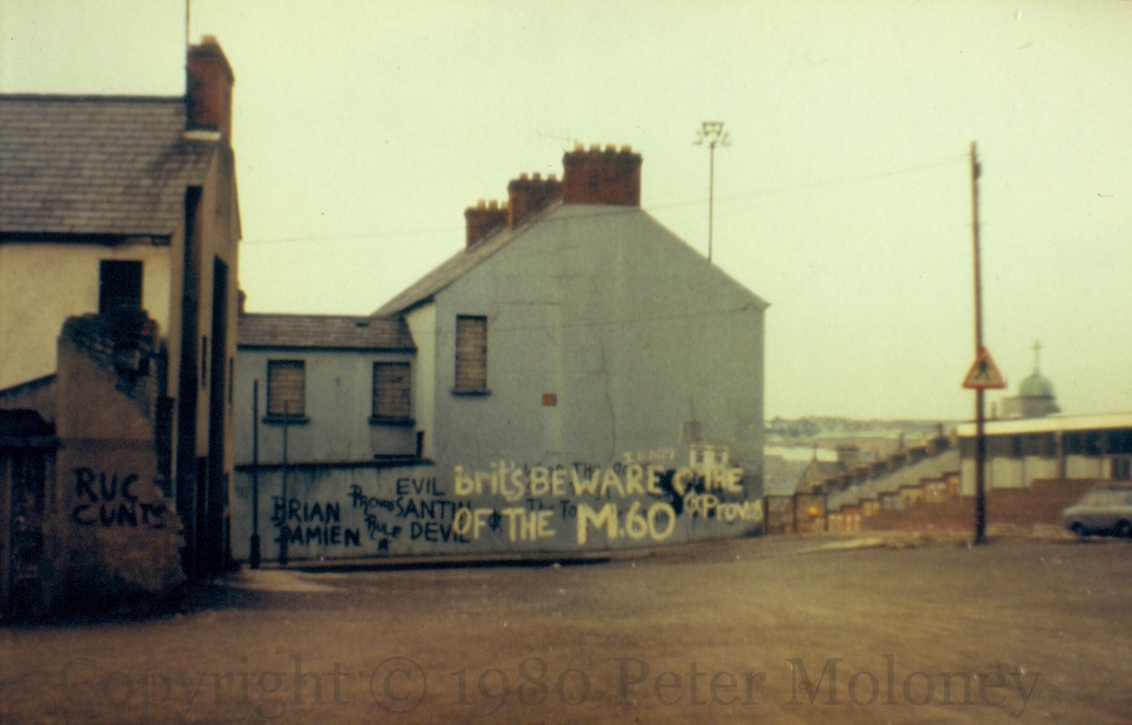 Beware Of The M.60 1980-01-062025-01-30Extramural Activity “Brit’s beware” “of the M.60”, “the Provos”, “Provos rule”, “RUC cunts”, “evil”, “devil”. Corporation Street, Derry Click image to enlargeCopyright © 1980 Peter MoloneyM00373 Share this: Share on X (Opens in new window) X Share on Facebook (Opens in new window) Facebook Like Loading... Related