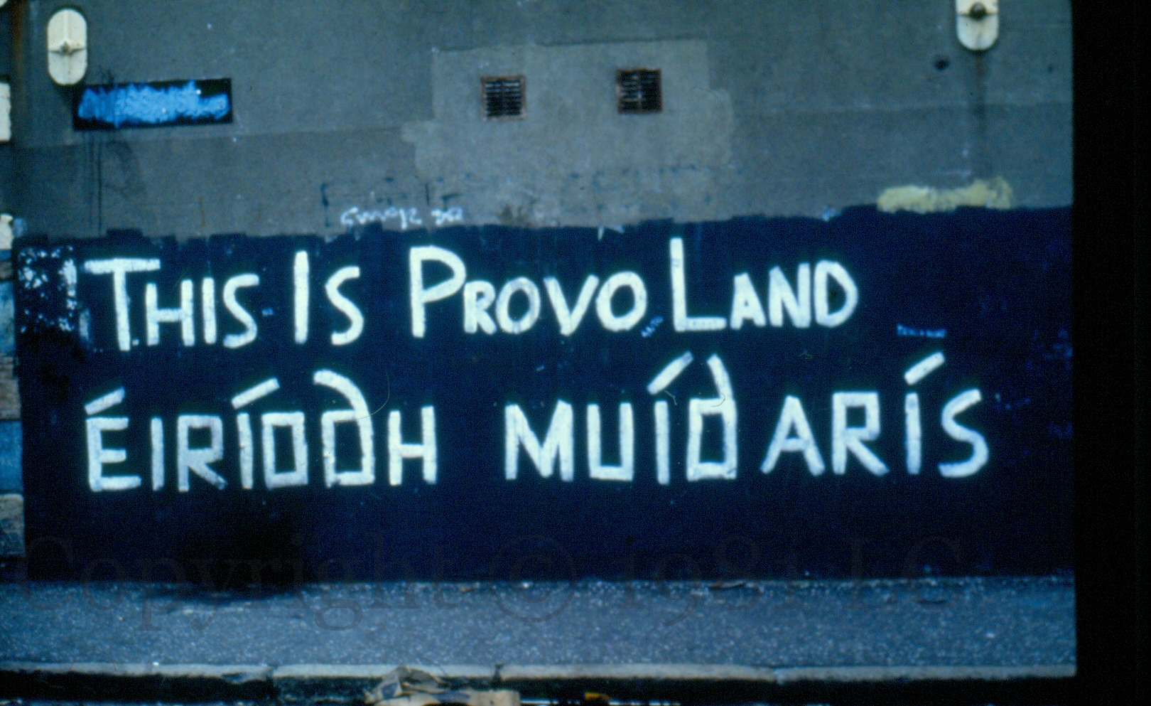 This Is Provo Land 1981-01-142024-12-20Extramural Activity “Éıríodh muíd [muıd] arís” [“let us rise again”] Odessa St, west Belfast Click image to enlargeCopyright © 1981 LCM00018 Share this: Click to share on X (Opens in new window) X Click to share on Facebook (Opens in new window) Facebook Like Loading... Related