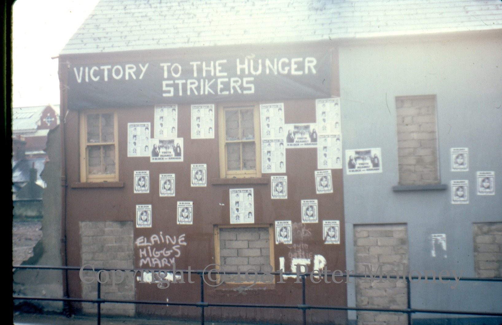 Victory To The Hunger Strikers 1981-01-182024-12-20Extramural Activity Slogan and posters on a bricked-up house in Bishop Street, Derry: “Youth against H-Block and Armagh”, “Don’t let them die” Click image to enlargeCopyright © 1981 Peter MoloneyM00027 Share this: Click to share on X (Opens in new window) X Click to share on Facebook (Opens in new window) Facebook Like Loading... Related