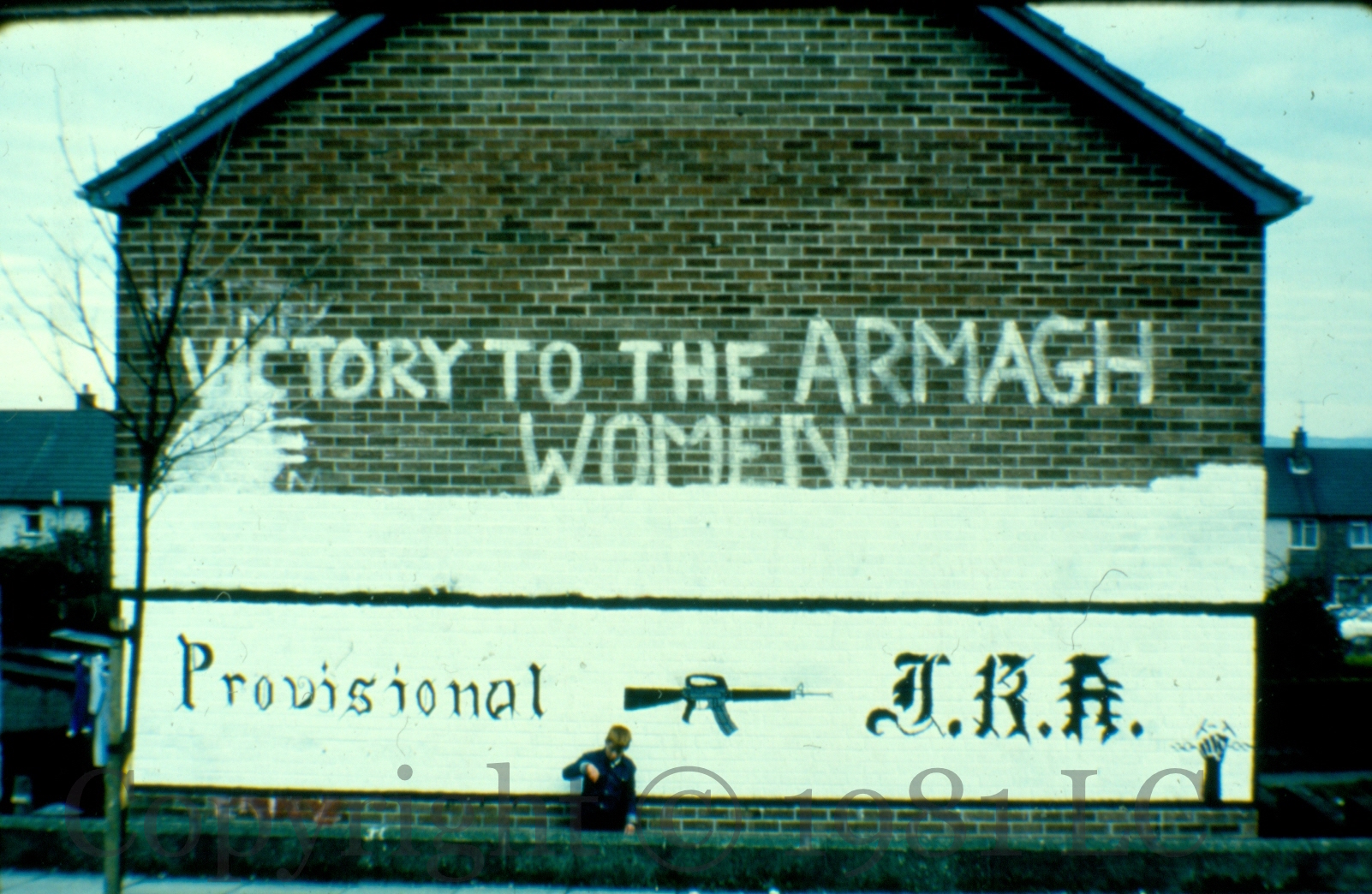 Victory To The Armagh Women 1981-03-262025-01-31Extramural Activity “Victory to the Armagh women” and “Provisional IRA” and an armalite. Rosnareen Avenue, Belfast Click image to enlargeCopyright © 1981 LCM00201 Share this: Click to share on X (Opens in new window) X Click to share on Facebook (Opens in new window) Facebook Like Loading... Related