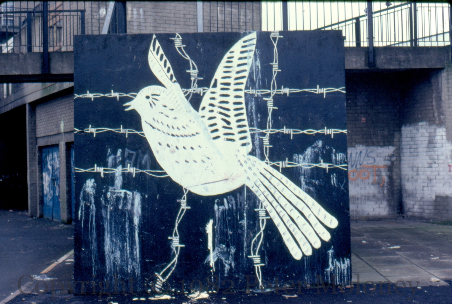 Spirit Of Freedom 1982-02-072025-01-31Extramural Activity The lark in barbed wire symbolising political prisoners, in Westland Street, Bogside, Derry. Click image to enlargeCopyright © 1982 Peter MoloneyM00191 Share this: Click to share on X (Opens in new window) X Click to share on Facebook (Opens in new window) Facebook Like Loading... Related