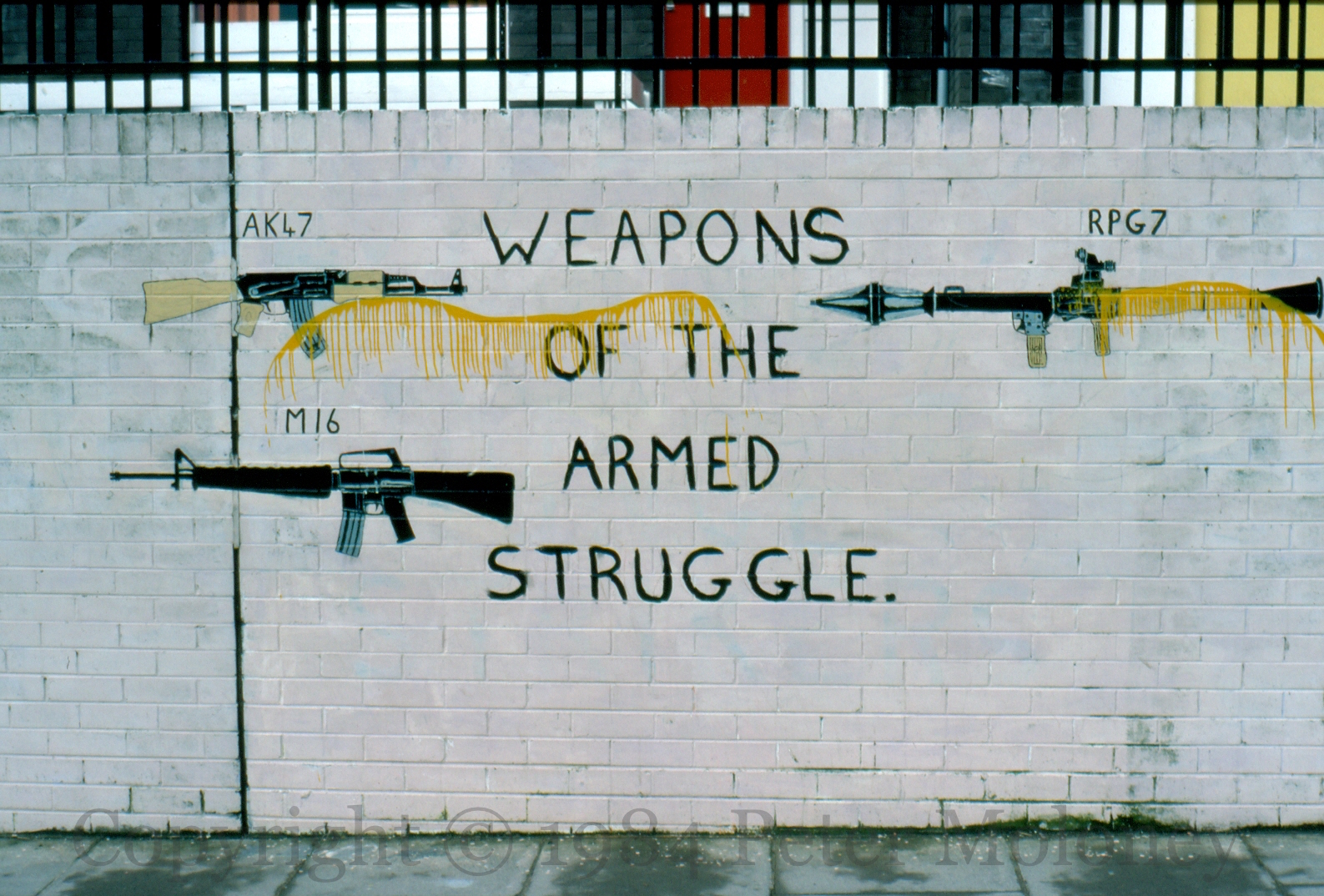 Weapons Of The Armed Struggle 1984-01-112025-01-31Extramural Activity The republican arsenal on display: an AK 47, an [armalite] M16, and an RPG7 (rocket-propelled grenade launcher). Bishop Street, Derry Click image to enlargeCopyright © 1984 Peter MoloneyM00245 Share this: Click to share on X (Opens in new window) X Click to share on Facebook (Opens in new window) Facebook Like Loading... Related