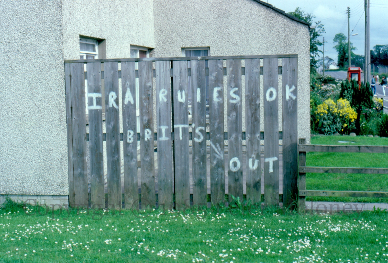 IRA Rules OK 1985-01-032025-01-31Extramural Activity Graffiti in Darling Street, Enniskillen: “IRA rules OK” and “Brits out”. Click image to enlargeCopyright © 1985 Peter MoloneyM00253 Share this: Share on X (Opens in new window) X Share on Facebook (Opens in new window) Facebook Like Loading... Related