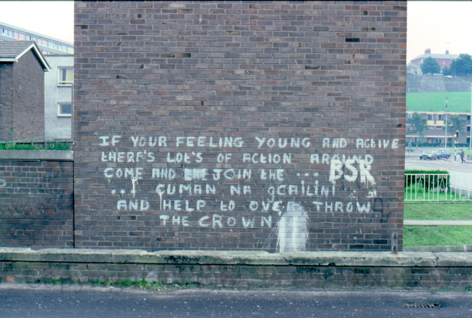 If You’re Feeling Young And Active 1985-01-132025-01-31Extramural Activity “If your [you’re] feeling young and active, there’s lots of action around. Come and join the … … Cuman[n] na gCailini [gCailíní], and help overthrown the crown.” Fahan Street, Derry Click image to enlargeCopyright © 1985 Peter MoloneyM00273 Share this: Share on X (Opens in new window) X Share on Facebook (Opens in new window) Facebook Like Loading... Related
