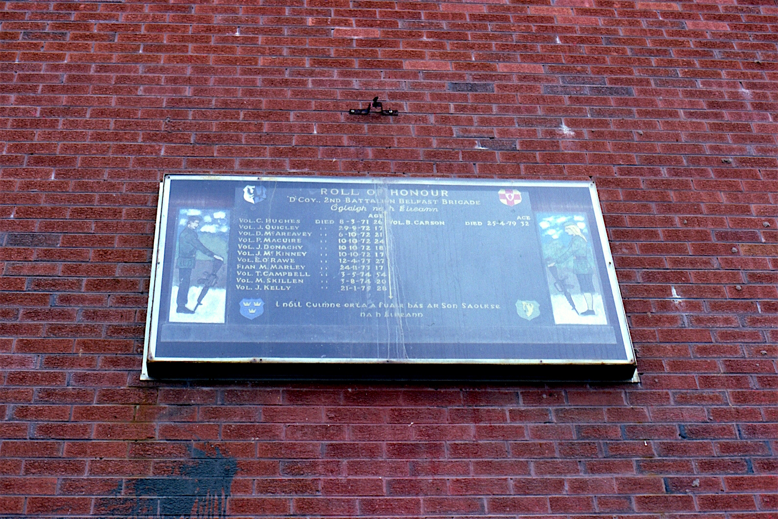 A roll of honour in Albert Street, Belfast, commemorating volunteers of the IRA’s D company, 2nd battalion, who died from 1971 to 1979: Hughes, Quigley, McAreevy, Maguire, Donaghy, McKinney, O’Rawe, Marley, Campbell, Skillen, Kelly, Carson