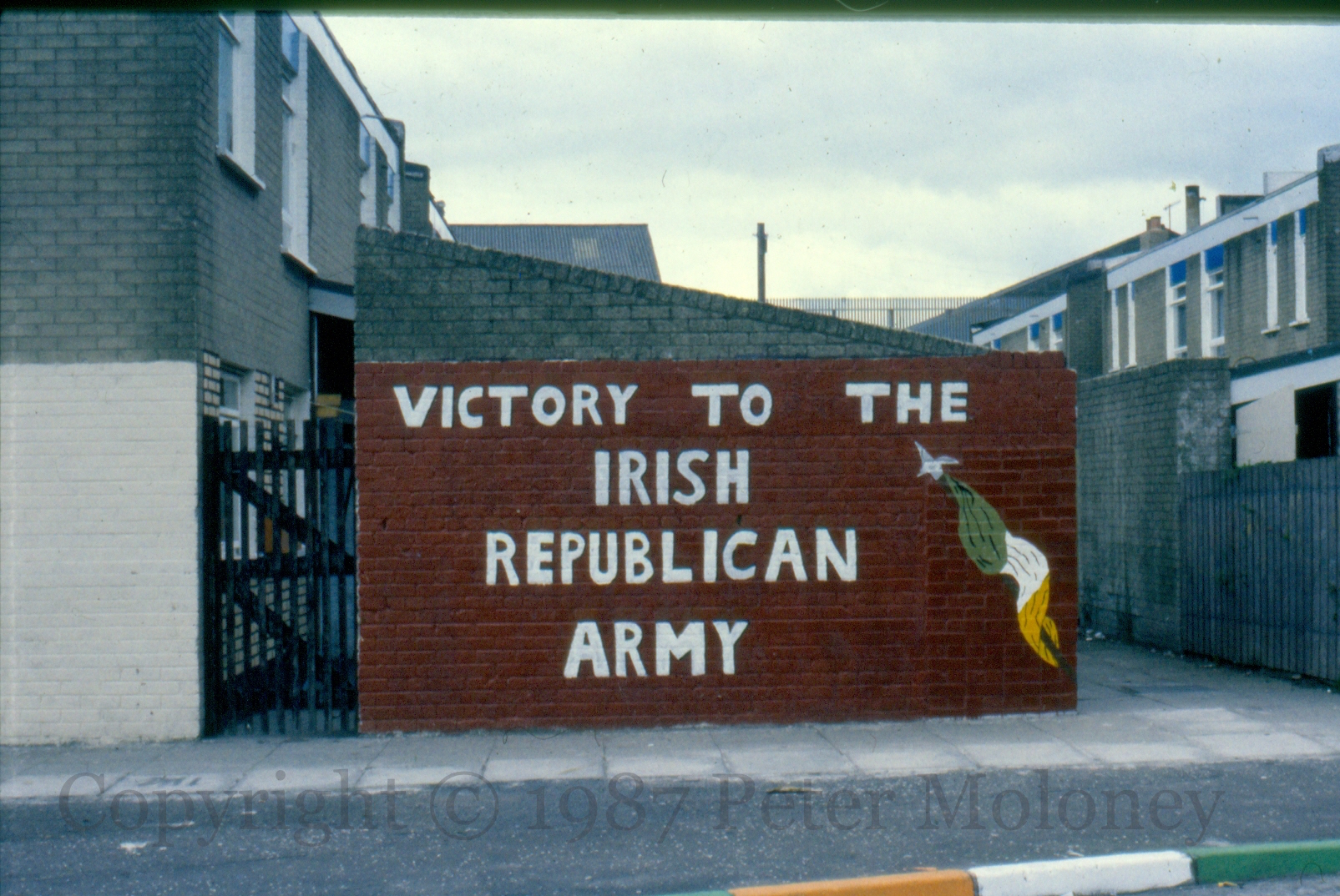 Victory To The Irish Republican Army 1987-01-212025-02-02Extramural Activity IRA slogan and tricolour on a pike. Westrock Drive, Belfast Click image to enlargeCopyright © 1987 Peter MoloneyM00463 Share this: Click to share on X (Opens in new window) X Click to share on Facebook (Opens in new window) Facebook Like Loading... Related