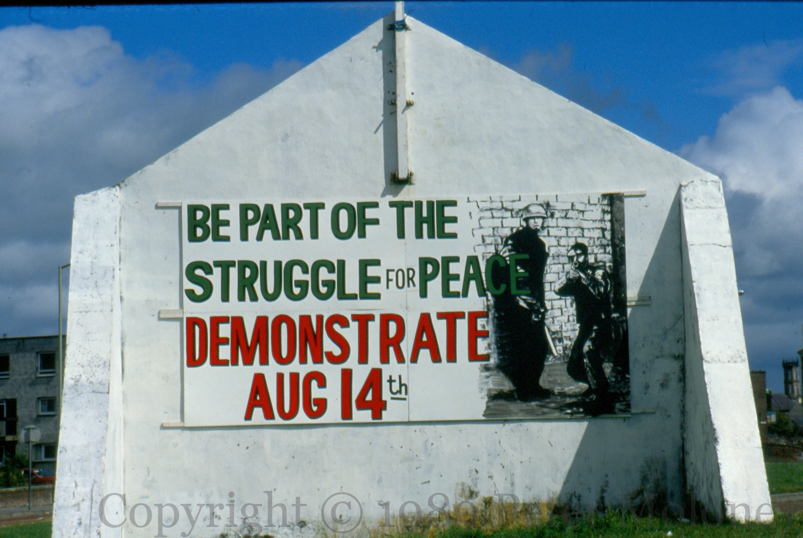 Be Part Of The Struggle For Peace 1989-01-182025-02-06Extramural Activity A call to march on the rear of Free Derry Corner, with police and army firing plastic bullets. Lecky Road, Derry. Click image to enlargeCopyright © 1989 Peter MoloneyM00629 Share this: Share on X (Opens in new window) X Share on Facebook (Opens in new window) Facebook Like Loading... Related
