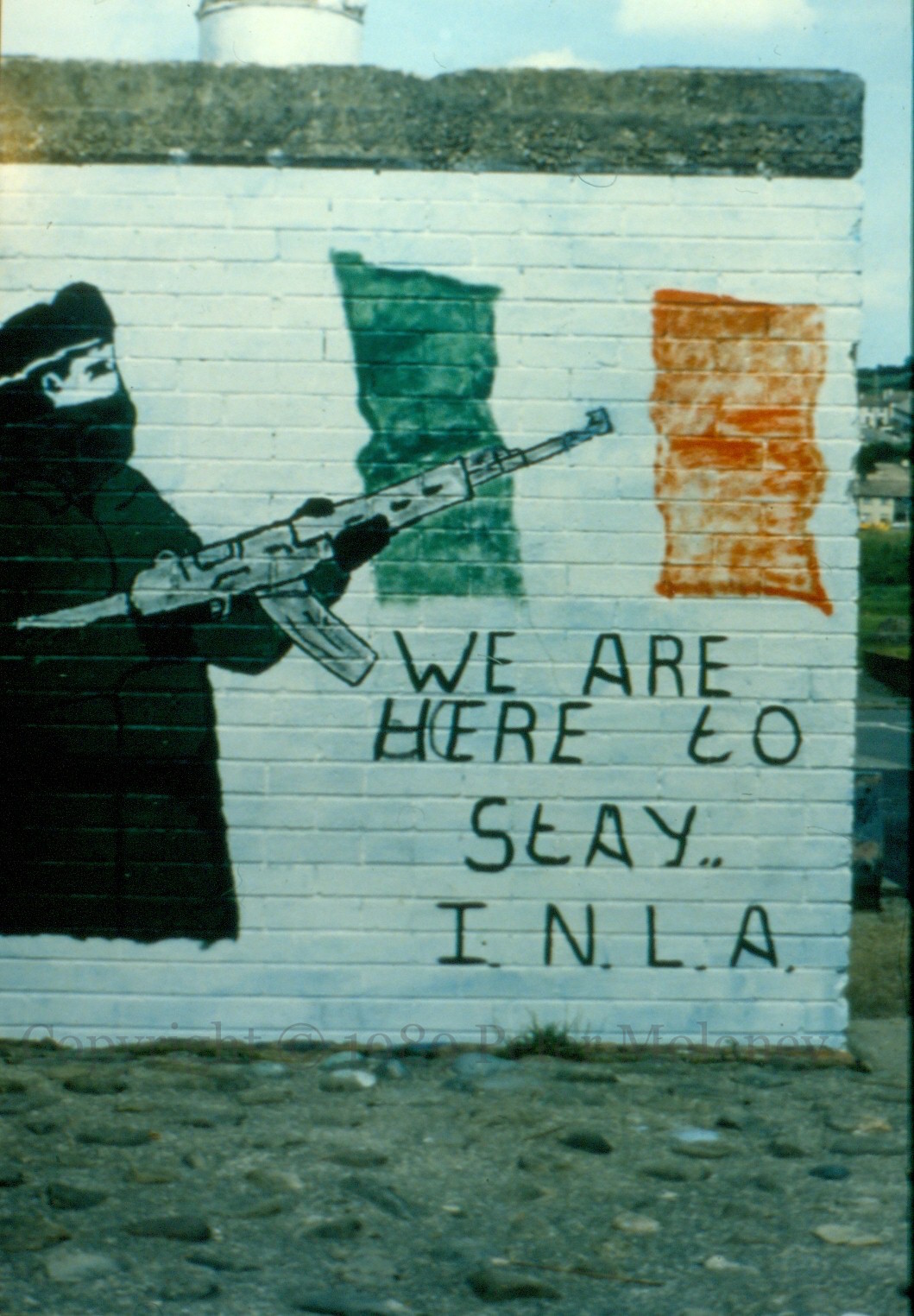 We Are Here To Stay 1989-03-062025-02-06Extramural Activity Hooded INLA volunteer with an assault rifle and a Tricolour. Ballycolman, Strabane Click image to enlargeCopyright © 1989 Peter MoloneyM00652 Share this: Click to share on X (Opens in new window) X Click to share on Facebook (Opens in new window) Facebook Like Loading... Related