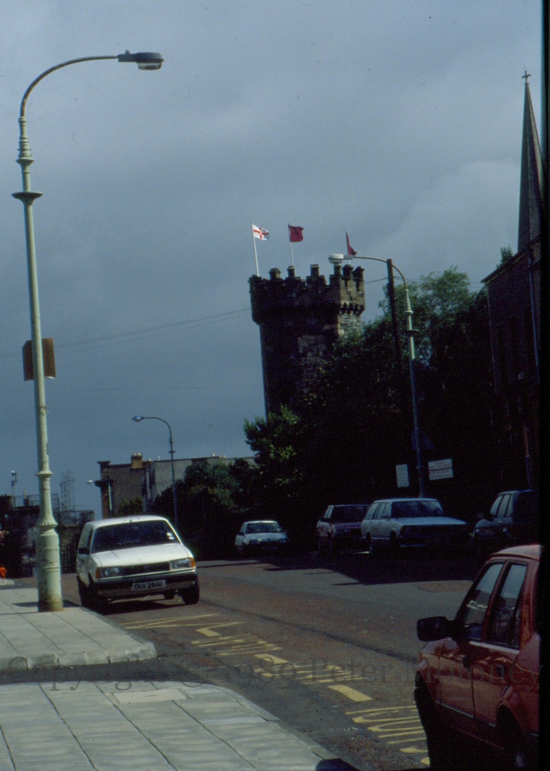 Flags Flying From The Tower 1989-03-192025-02-06Extramural Activity The Ulster banner flies (along with two unidentifiable flags) from the tower of the old gaol over Bishop Street, London-/Derry. Click image to enlargeCopyright © 1989 Peter MoloneyM02125 Share this: Share on X (Opens in new window) X Share on Facebook (Opens in new window) Facebook Like Loading... Related
