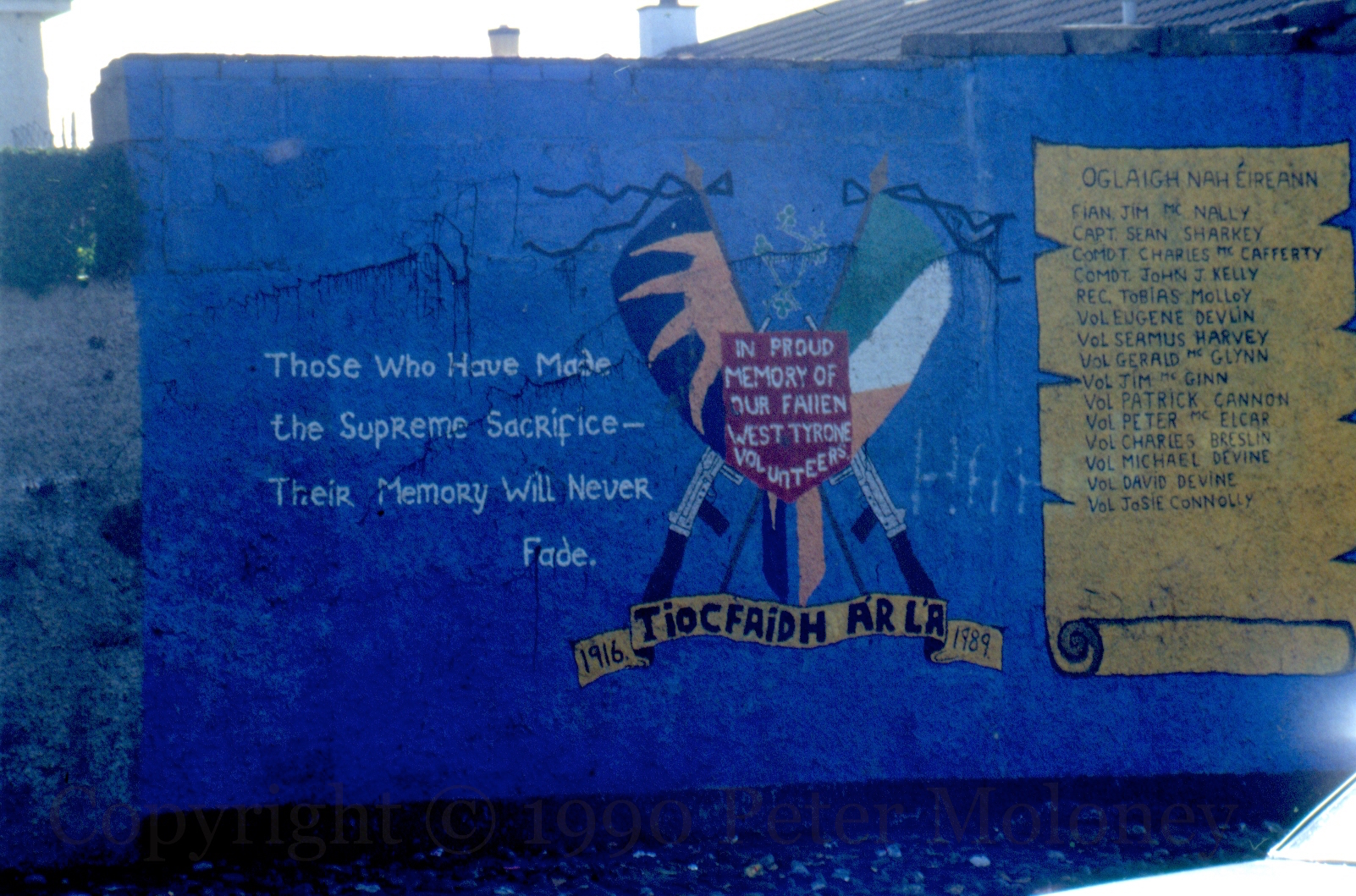 1990 image of The Supreme Sacrifice, listing the names of deceased West Tyrone IRA volunteers.