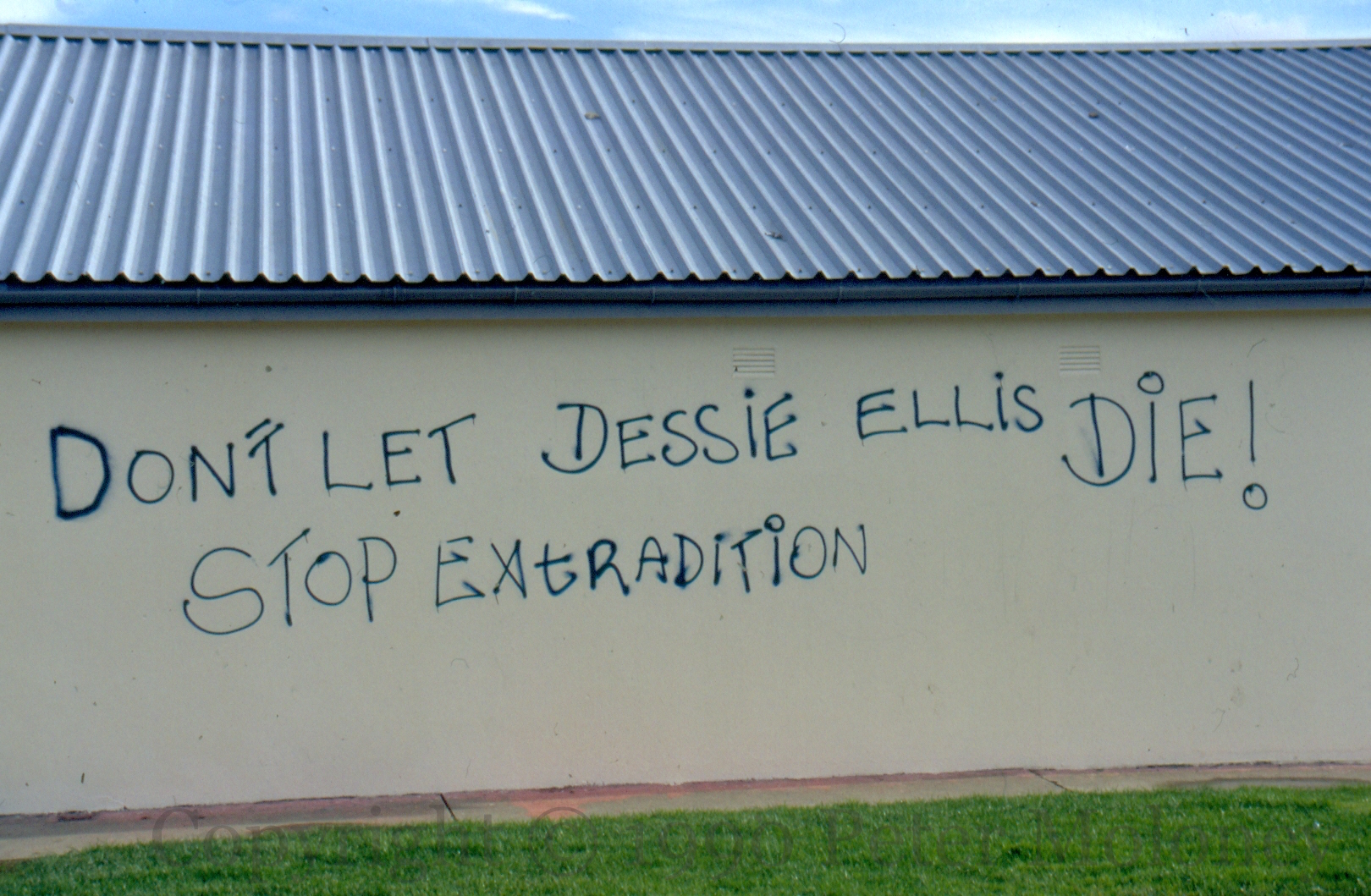 More Dessie Ellis “stop extradition” graffiti, this time from Central Drive, Derry. For some info, see Don’t Hand Him Over.