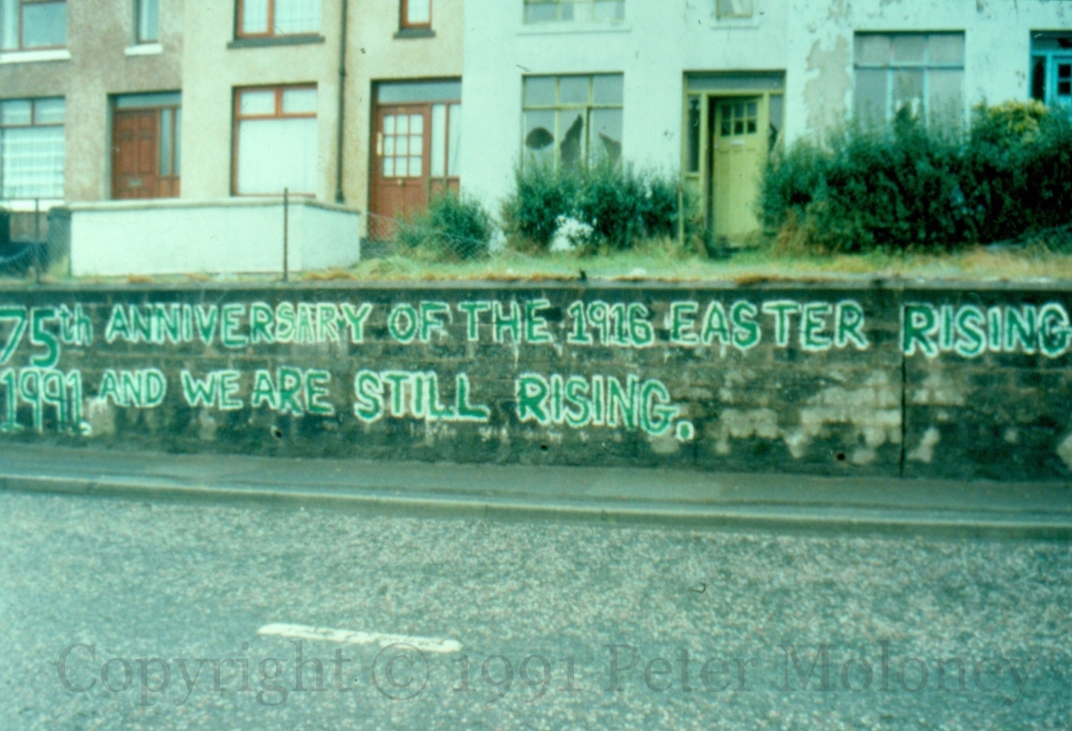 We Are Still Rising 1991-01-122025-02-08Extramural Activity “75th anniversary of the 1916 Easter Rising. 1991 and we are still rising.” Strabane Old Road, Derry. Click image to enlargeCopyright © 1991 Peter MoloneyM00965 Share this: Share on X (Opens in new window) X Share on Facebook (Opens in new window) Facebook Like Loading... Related