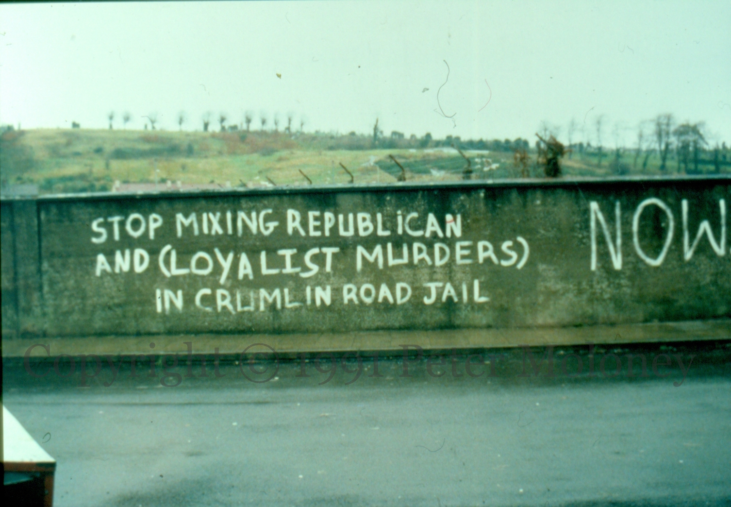 Stop Mixing 1991-01-132025-02-08Extramural Activity “Stop mixing republican and (loyalist murder[er]s) in Crumlin Road Jail”. Anne Street, Derry Click image to enlargeCopyright © 1991 Peter MoloneyM00969 Share this: Share on X (Opens in new window) X Share on Facebook (Opens in new window) Facebook Like Loading... Related