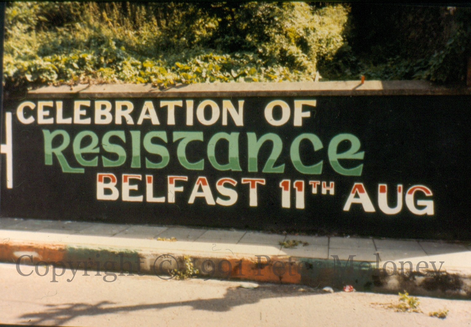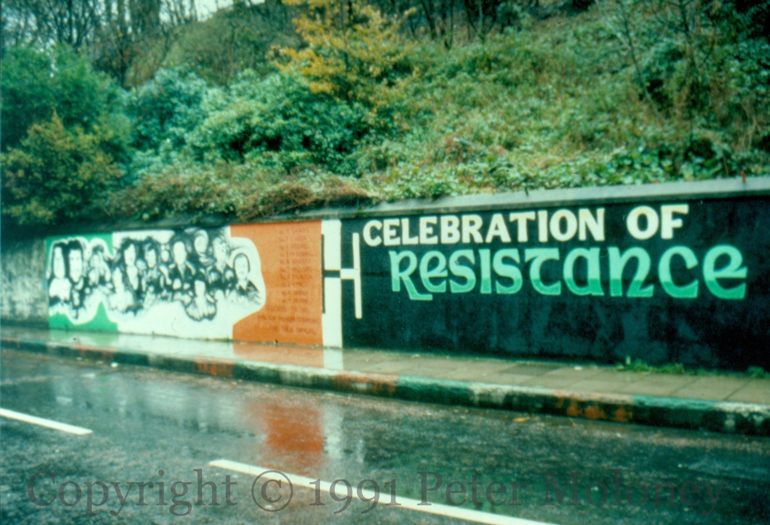 Portraits of the ten deceased 1981 hunger strikers are combined in a gallery on Lecky Road, Derry, next to a call to march in the Celebration Of Resistance in Belfast on Sunday August 11th. If you recognize the artist, please get in touch.