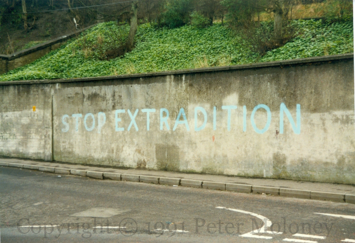 Stop Extradition 1991-02-062025-02-08Extramural Activity Two pieces of “Stop extradition” graffiti in Derry, one on the walls of the old city, the other in Windmill Terrace. Click image to enlargeCopyright © 1991 Peter MoloneyM02518 M02519 Share this: Click to share on X (Opens in new window) X Click to share on Facebook (Opens in new window) Facebook Like Loading... Related