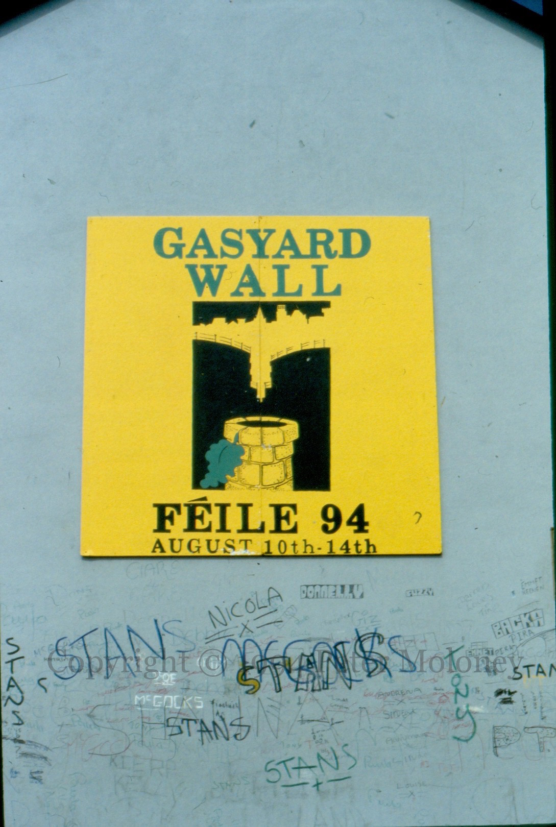 Féıle 94 1994-01-072025-02-22Extramural Activity Gasyard Wall Féıle 1994, with the city skyline, twin chimneys of the gasyard, and an oak leaf beside a well. Lecky Road, Brandywell, Derry Click image to enlargeCopyright © 1994 Peter MoloneyM01097 Share this: Share on X (Opens in new window) X Share on Facebook (Opens in new window) Facebook Like Loading... Related