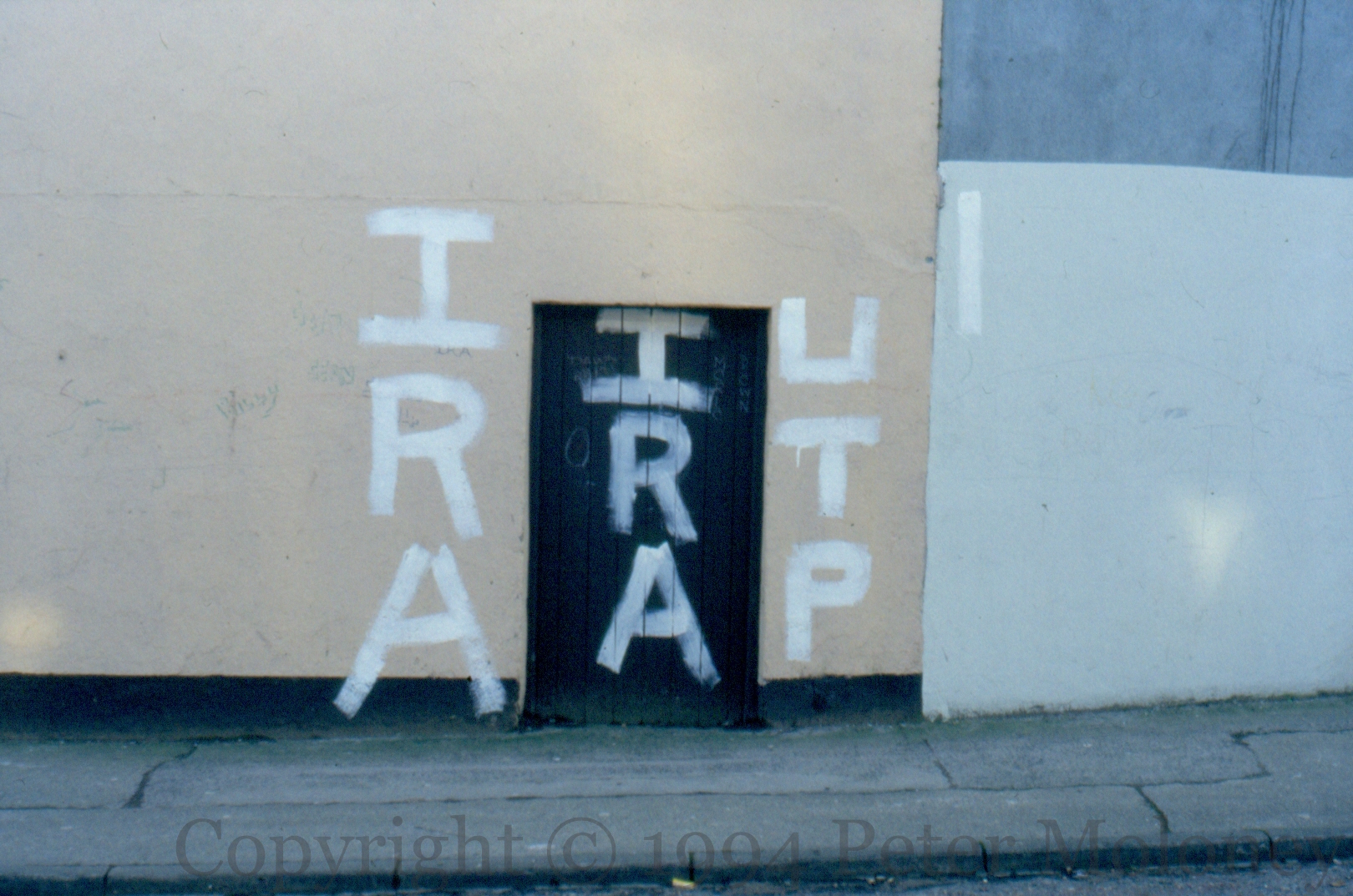Brits Out 1994-02-072025-02-22Extramural Activity “IRA” and “Brits out” graffiti in Marlborough Road, Derry. Click image to enlargeCopyright © 1994 Peter MoloneyM01140 M01141 Share this: Share on X (Opens in new window) X Share on Facebook (Opens in new window) Facebook Like Loading... Related