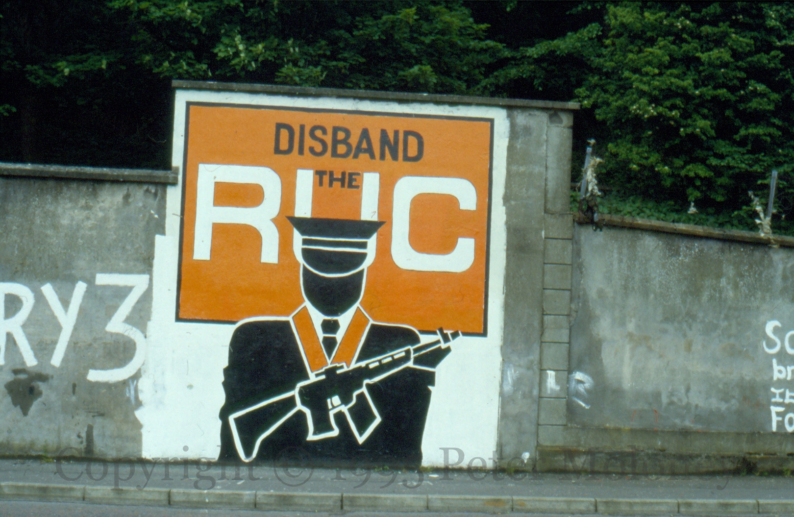 Disband The RUC 1995-01-122025-02-22Extramural Activity “Disband the RUC” – but the figure is a combination of policeman, Orangeman, and paramilitary. Windmill Terrace, Brandywell, Derry Click image to enlargeCopyright © 1995 Peter MoloneyM01166 Share this: Share on X (Opens in new window) X Share on Facebook (Opens in new window) Facebook Like Loading... Related