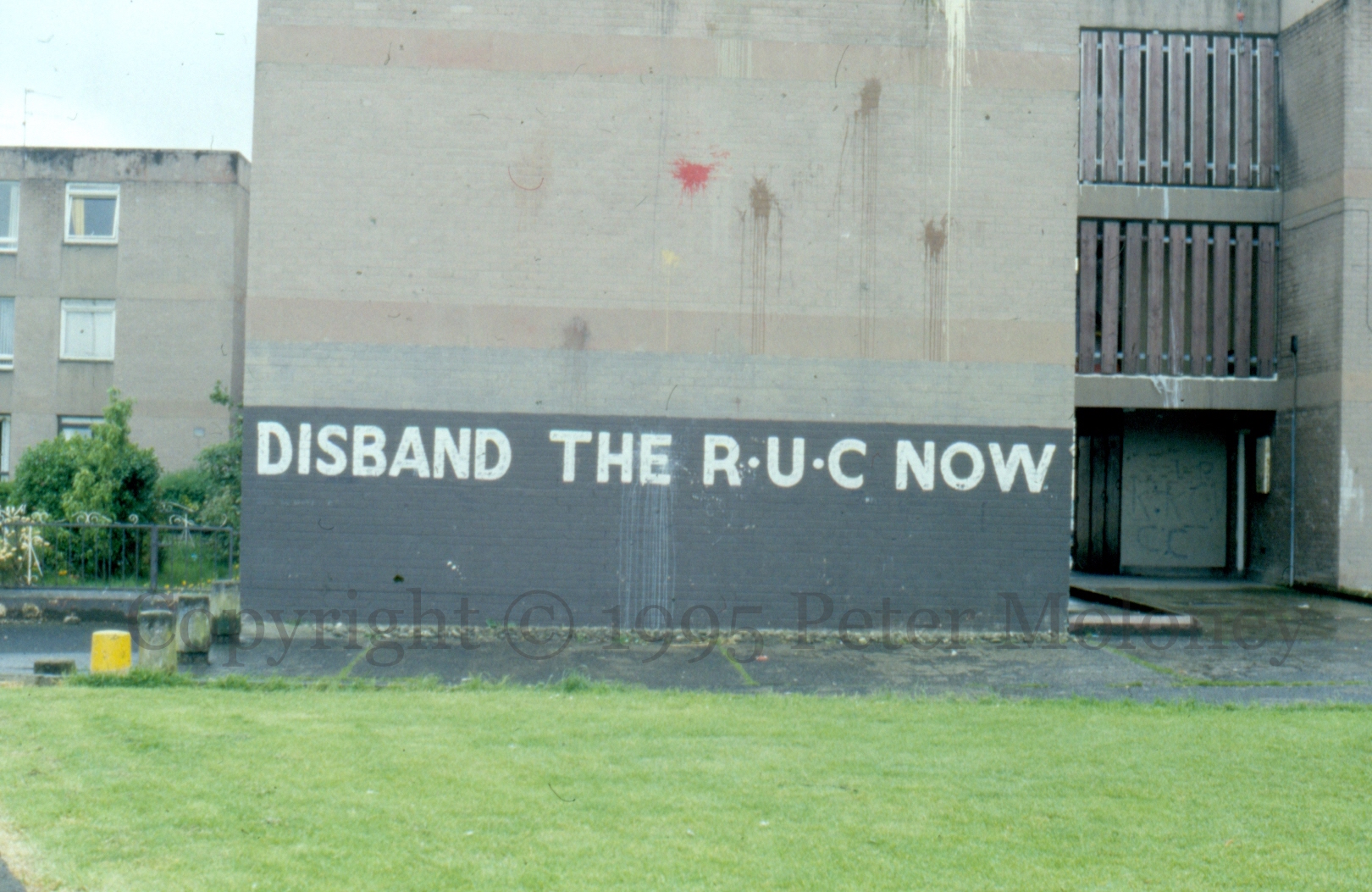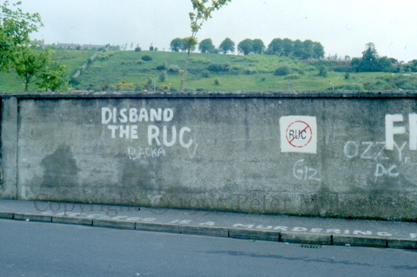 Disband The RUC 1995-01-142025-02-22Extramural Activity Two more calls to “disband the RUC” this time from Rossville Street and Anne Street, Derry. (“Lee Clegg is a murdering …” is written on the pavement in the second image.) Click image to enlargeCopyright © 1995 Peter MoloneyM01167 M01175 Share this: Click to share on X (Opens in new window) X Click to share on Facebook (Opens in new window) Facebook Like Loading... Related