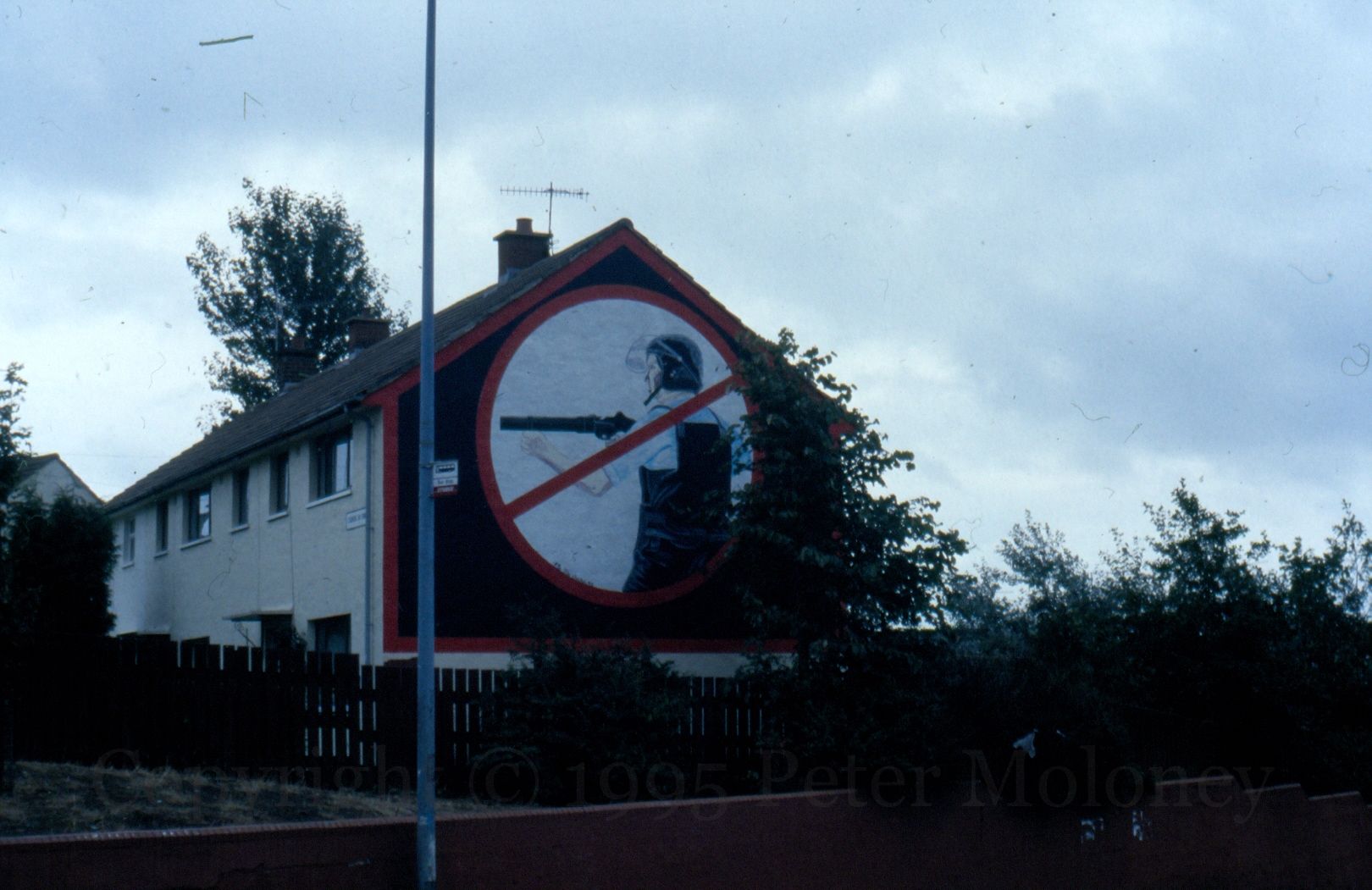 No Plastic Bullets 1995-01-282025-02-22Extramural Activity “No plastic bullets” in the form of a road sign: an RUC man in riot gear is overlaid by a circle and struck through. Whiterock Road, west Belfast Click image to enlargeCopyright © 1995 Peter MoloneyM01193 Share this: Share on X (Opens in new window) X Share on Facebook (Opens in new window) Facebook Like Loading... Related
