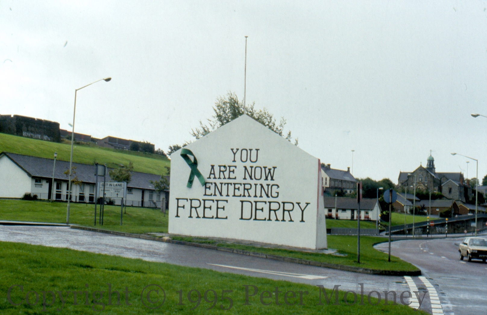 You Are Now Entering Free Derry 1995-03-082025-02-22Extramural Activity Free Derry Corner with a (physical) green ribbon, for the campaign to free republican prisoners. Click image to enlargeCopyright © 1995 Peter MoloneyM01252 Share this: Click to share on X (Opens in new window) X Click to share on Facebook (Opens in new window) Facebook Like Loading... Related
