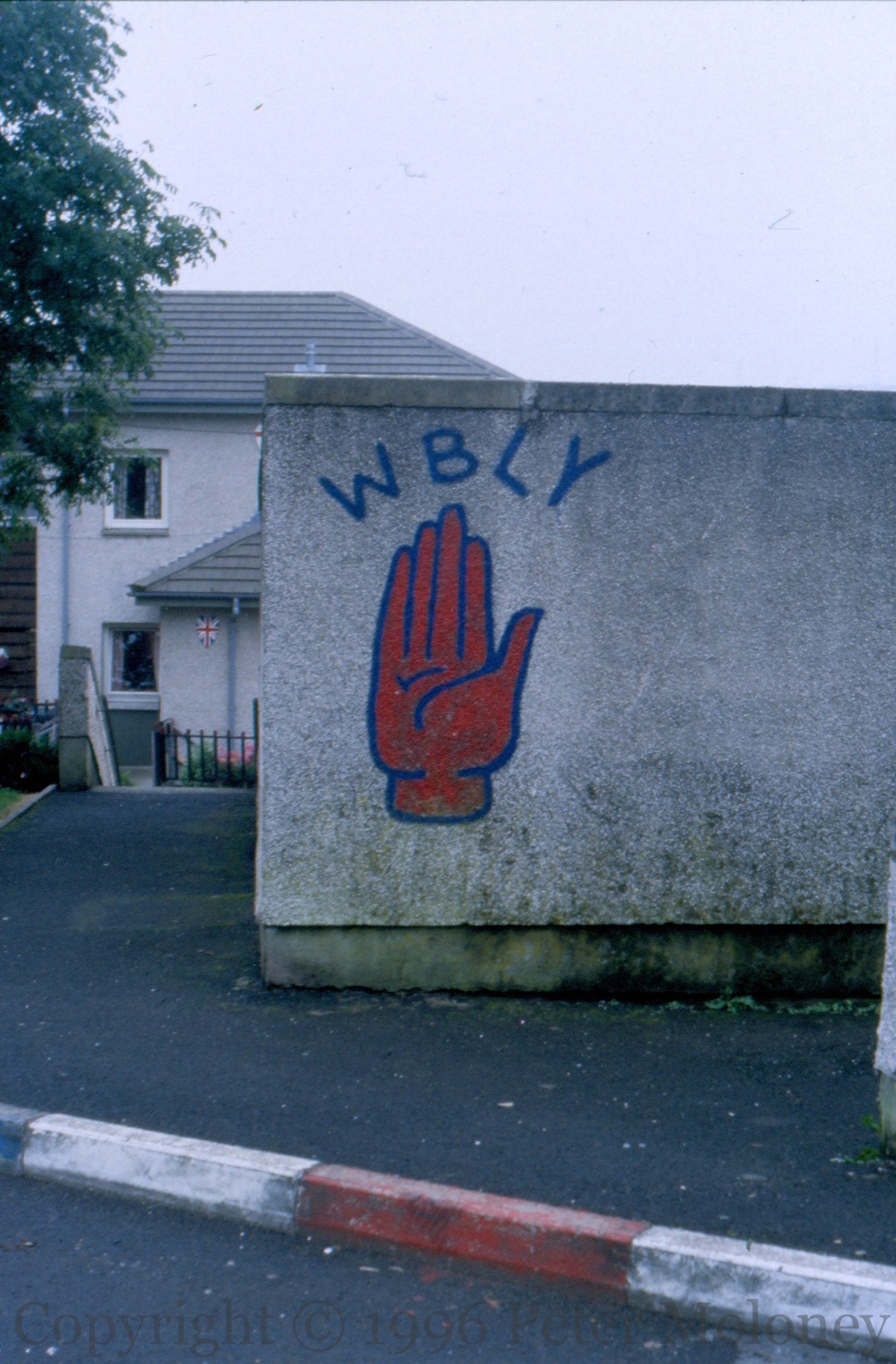 WBLY 1996-01-202025-02-22Extramural Activity The red hand of Ulster and “West Bank Loyalist Youth”. In the Fountain, London-/Derry. Click image to enlargeCopyright © 1996 Peter MoloneyM01294 Share this: Click to share on X (Opens in new window) X Click to share on Facebook (Opens in new window) Facebook Like Loading... Related