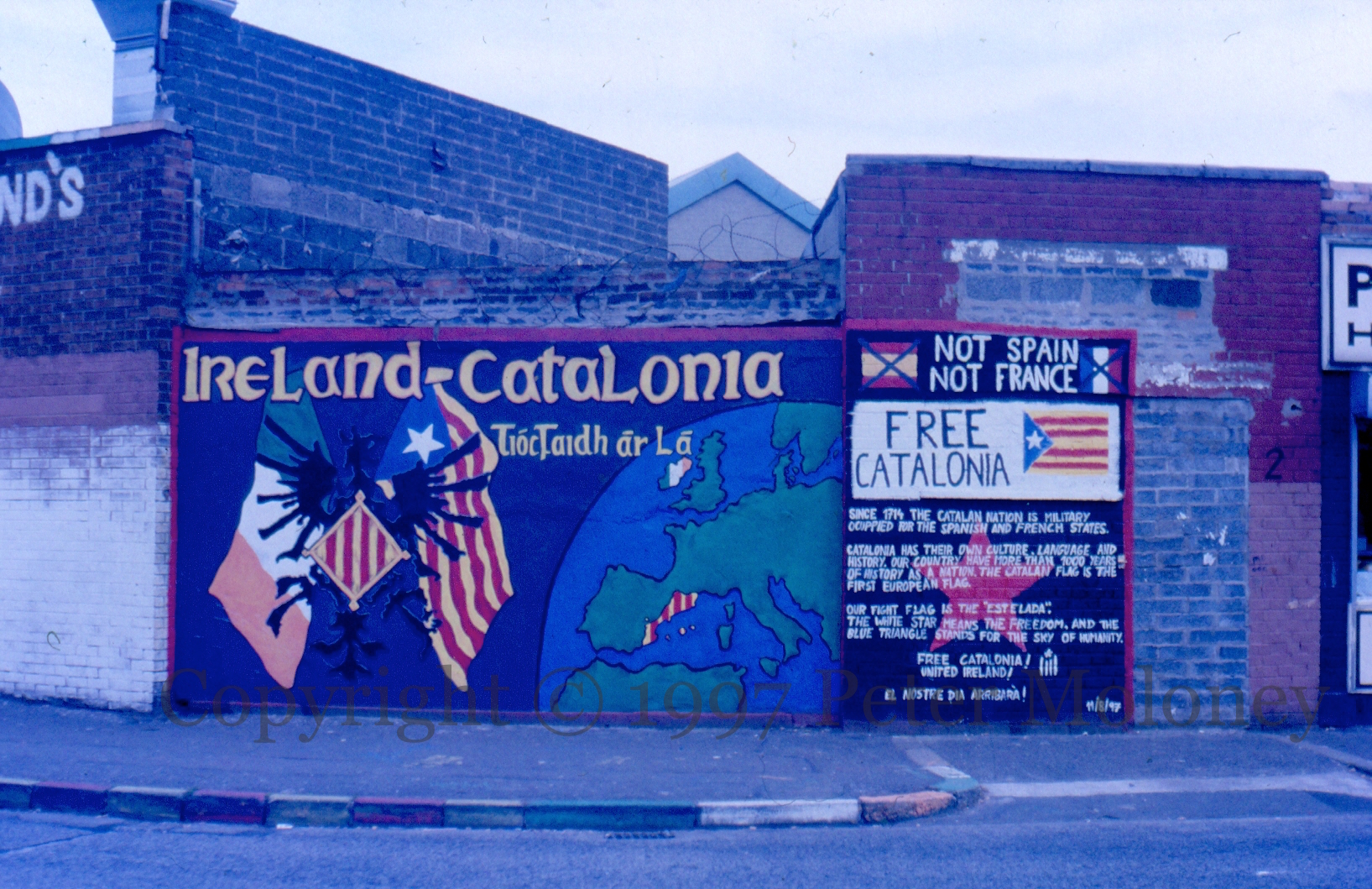 “Not Spain, not France. Free Catalonia. Since 1714 the Catalan nation is military [sic] occupied for the Spanish and French states. Catalonia has their own culture, language, and history. Our country have [sic] more than 1000 years of history as a nation. The Catalan flag is the first European flag. Our fight flag is the “Estelada”. The white star means the freedom, and the blue triangle stands for the sky of humanity. Free Catalonia! United Ireland! El nostre dia arribarà! Tıócfaıdh [sic] ár lá. 11/8/97″