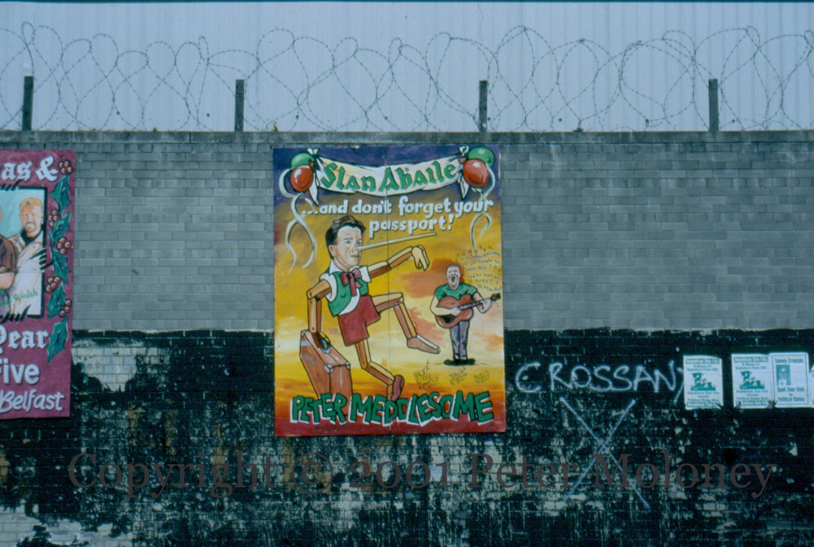 Peter Mandelson served as NI Secretary from October 1999 (replacing Mo Mowlam) to January 2001. As such, he oversaw the creation of the Assembly and of the PSNI. His departure (on 2001-01-24) is greeted with celebration and song – “Slán Abhaıle”.