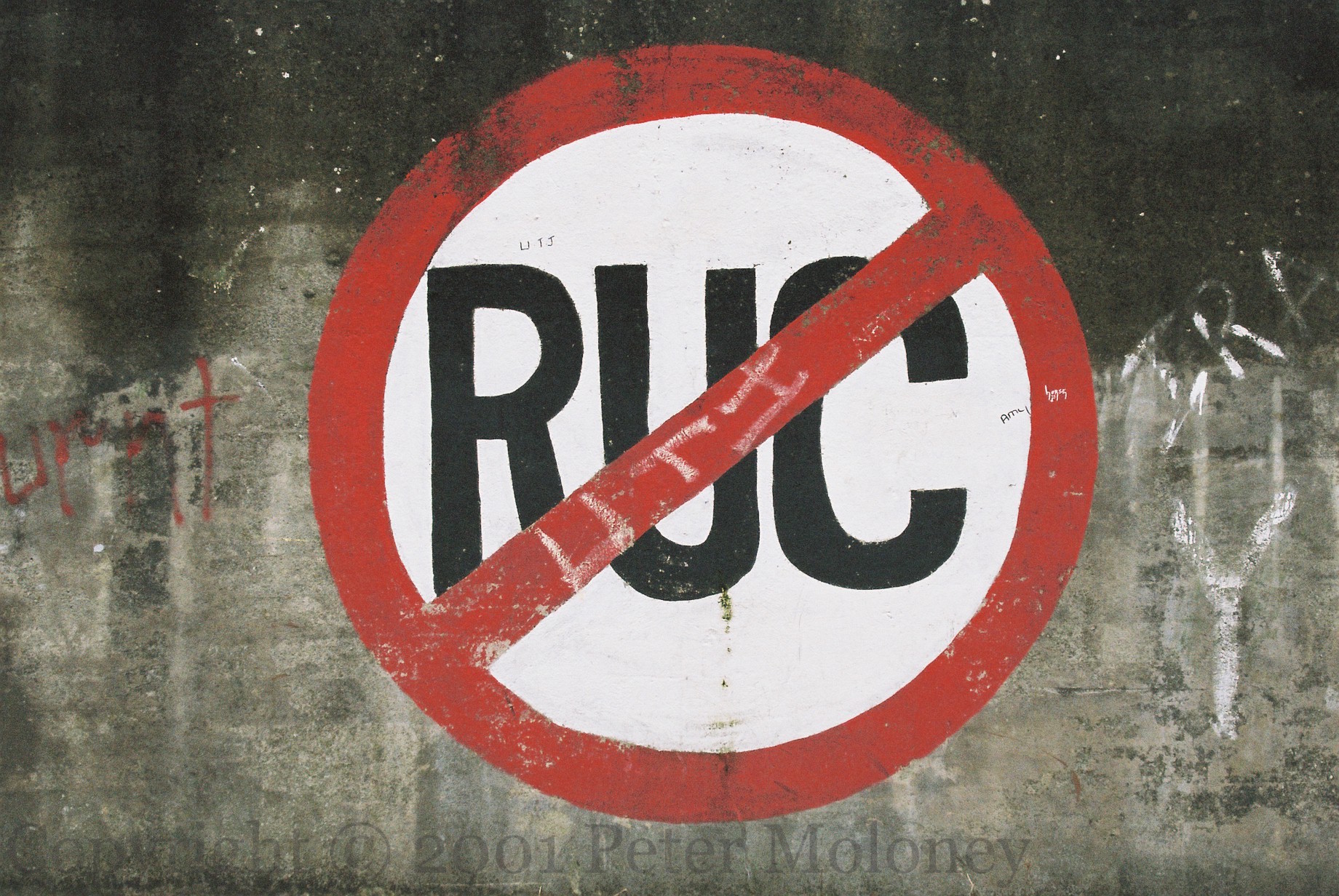 No RUC 2001-01-082025-02-23Extramural Activity “No RUC” road sign in Lecky Road, Derry. Click image to enlargeCopyright © 2001 Peter MoloneyM01413 Share this: Click to share on X (Opens in new window) X Click to share on Facebook (Opens in new window) Facebook Like Loading... Related