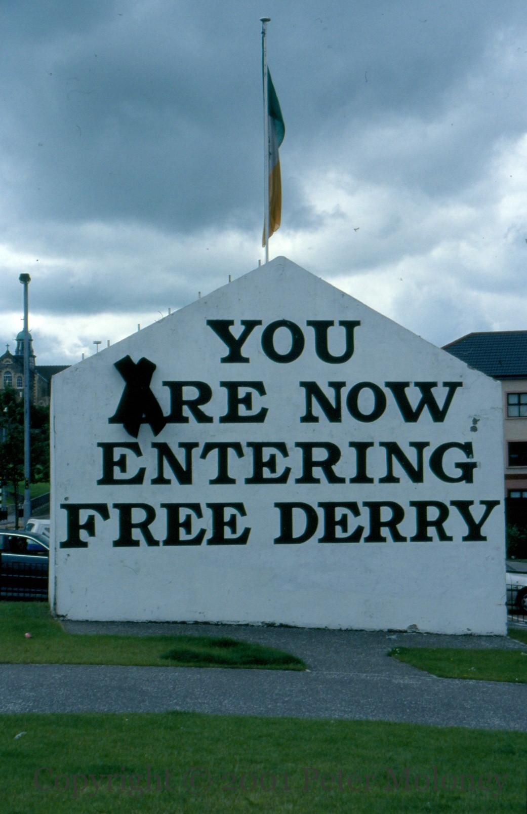 You Are Now Entering Free Derry 2001-01-112025-02-23Extramural Activity 2001 images of Free Derry Corner, with a black ribbon rather than a green one. Lecky Road, Derry Click image to enlargeCopyright © 2001 Peter MoloneyM01405 M01408 Share this: Share on X (Opens in new window) X Share on Facebook (Opens in new window) Facebook Like Loading... Related