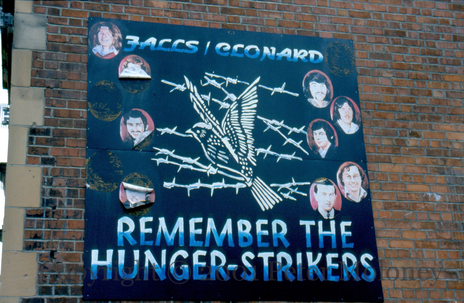 Remember The Hunger-Strikers 2001-03-092025-02-24Extramural Activity Frank Stagg and Michael Gaughan are included alongside (what remains of portraits of) the ten deceased 1981 hunger strikers on a board on the side of the “Falls/Clonard” library. Click image to enlargeCopyright © 2001 Peter MoloneyM01490 Share this: Share on X (Opens in new window) X Share on Facebook (Opens in new window) Facebook Like Loading... Related