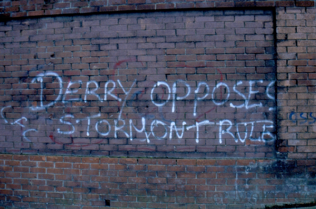 England Do You Really Think Its Over 2001-04-202025-02-24Extramural Activity Two pieces of graffiti on Eastway wall, Derry: “England do you really think its over – IRA” and “Derry opposed Stormont rule”. Click image to enlargeCopyright © 2001 Peter MoloneyM01578 M01577 Share this: Click to share on X (Opens in new window) X Click to share on Facebook (Opens in new window) Facebook Like Loading... Related