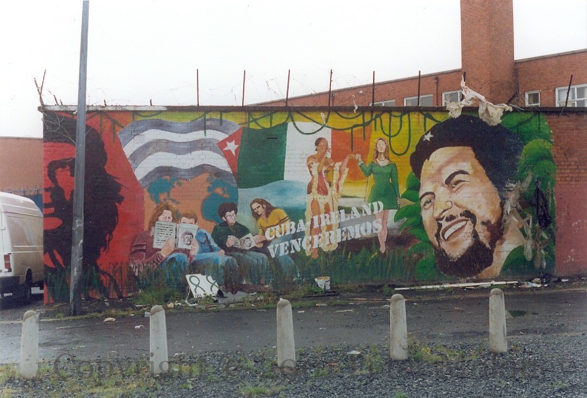 Cuba 2001-05-202025-02-24Extramural Activity “Cuba – Ireland Venceremos” [We will overcome] For an unobstructed view of the left-hand-side, with Fidel Castro on a poster, see 1999’s Cuba. Shiels Street, west Belfast Click image to enlargeCopyright © 2001 Peter MoloneyM02503 M02504 Share this: Click to share on X (Opens in new window) X Click to share on Facebook (Opens in new window) Facebook Like Loading... Related