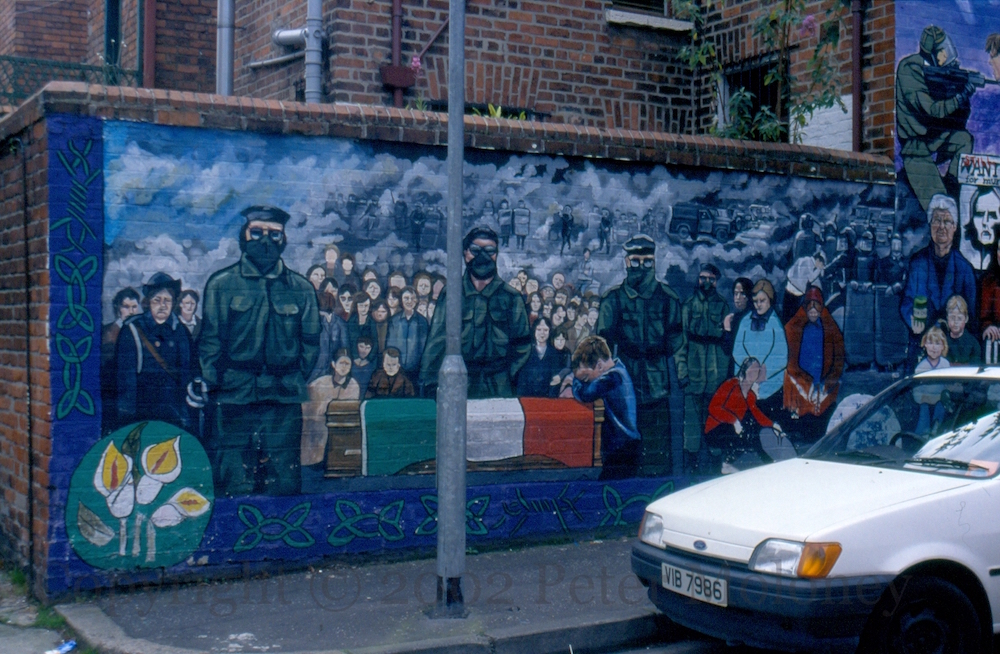 Various images and posters from 1980 and 1981 are reproduced. Along the top, we see (l-r) a soldier is confronted at the top of Springhill (image at Irish Times), “Wanted for murder [and torture of Irish prisoners]” (image at MSU), “Mothers hunger”, “Blessed are those who hunger for justice“, “Where there is oppression there is resistance”, Armagh hunger-striker Mary Doyle.