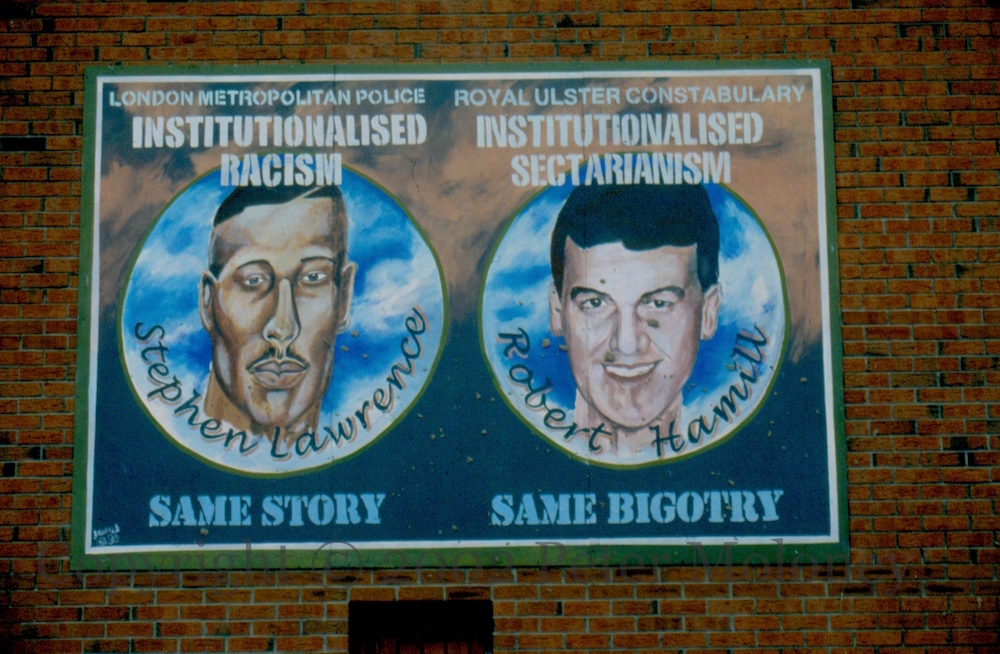 Londoner Stephen Lawrence was murdered by stabbing in 1993 and, although arrests were made, no charges were brought. A 1998 public inquiry found that the Metropolitan Police Service was “institutionally racist”. In 2012, two of the original suspects were found guilty of the murder (WP). Catholic Robert Hamill was beaten to death by loyalists in Portadown in 1997 while police in an RUC land-rover looked on (WP).