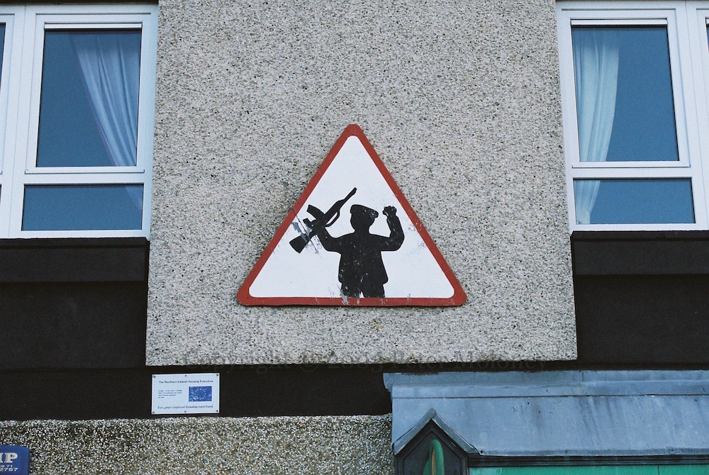 This is a 2003 image of the 2001 (post-peace) Sniper At Work in Drumleck Drive, Shantallow, Derry.