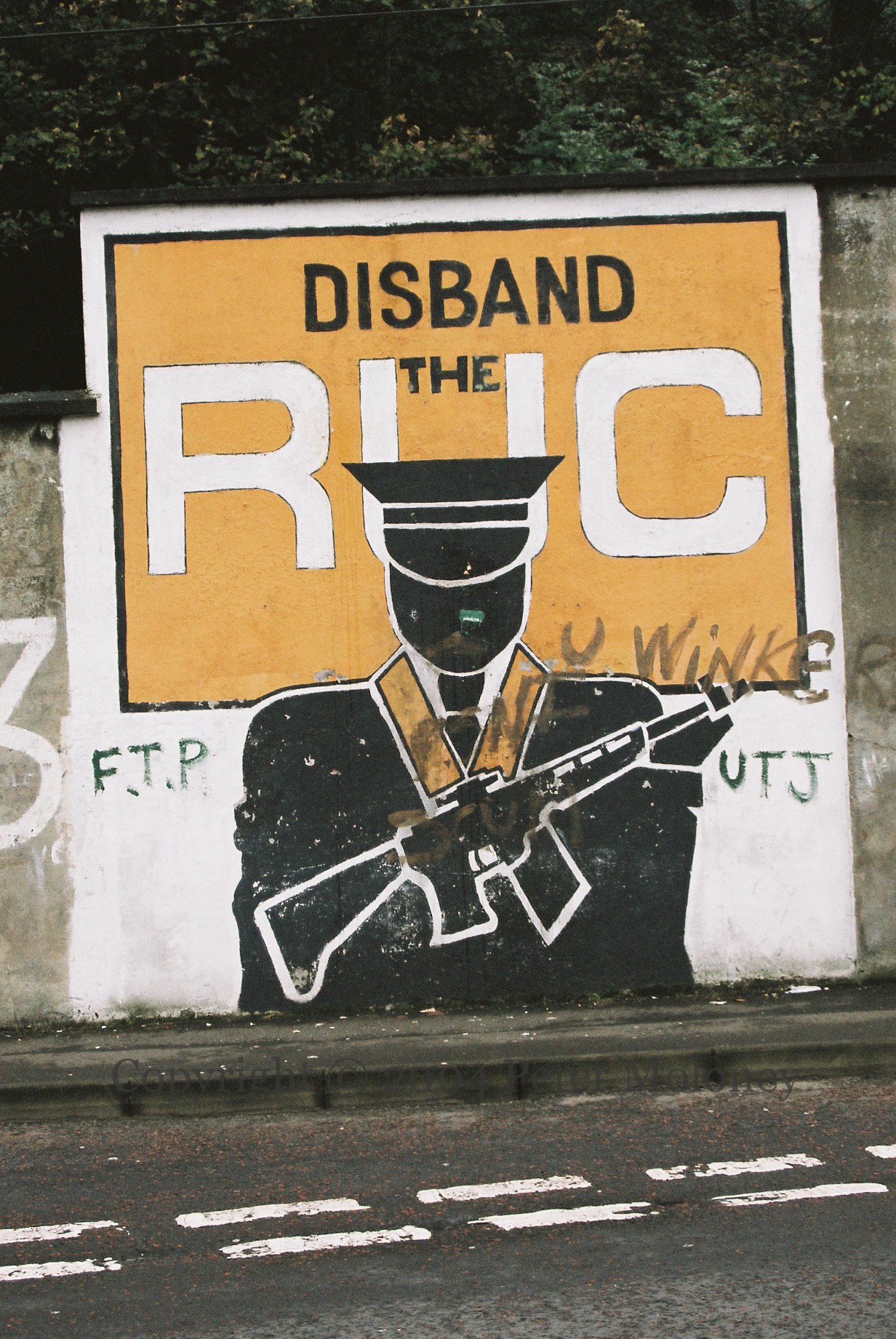 Still standing after nine years (1995) – a three-in-one RUC/Orange Order/loyalist paramilitary mural in Lecky Road, Derry.