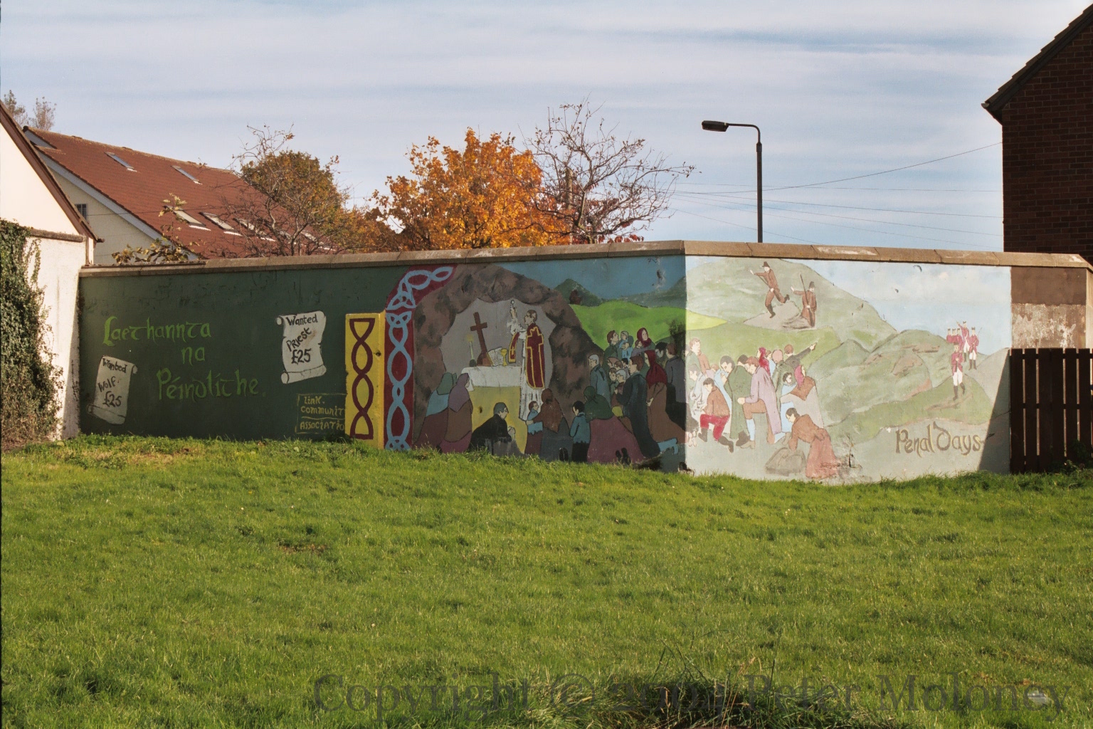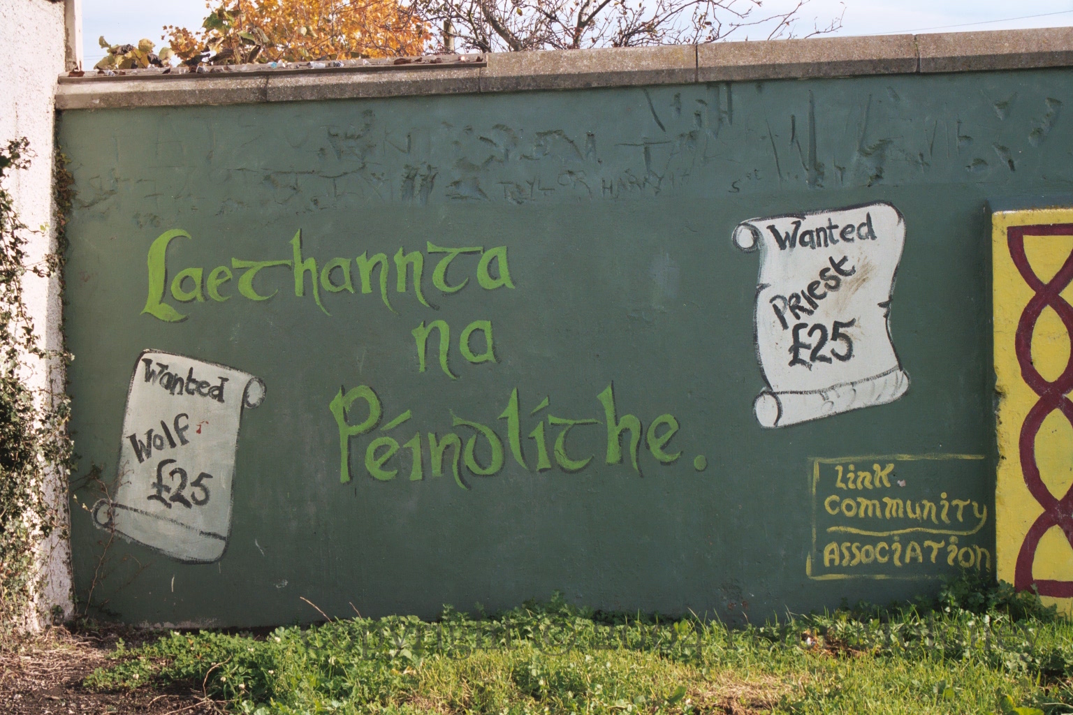 25 pounds is offered as the bounty for a priest, the same as for a wolf. The priest is conducting a Catholic mass but clergy were banned from Ireland under the 1652 Act Of Settlement, the Penal Laws (Na Péındlíthe).