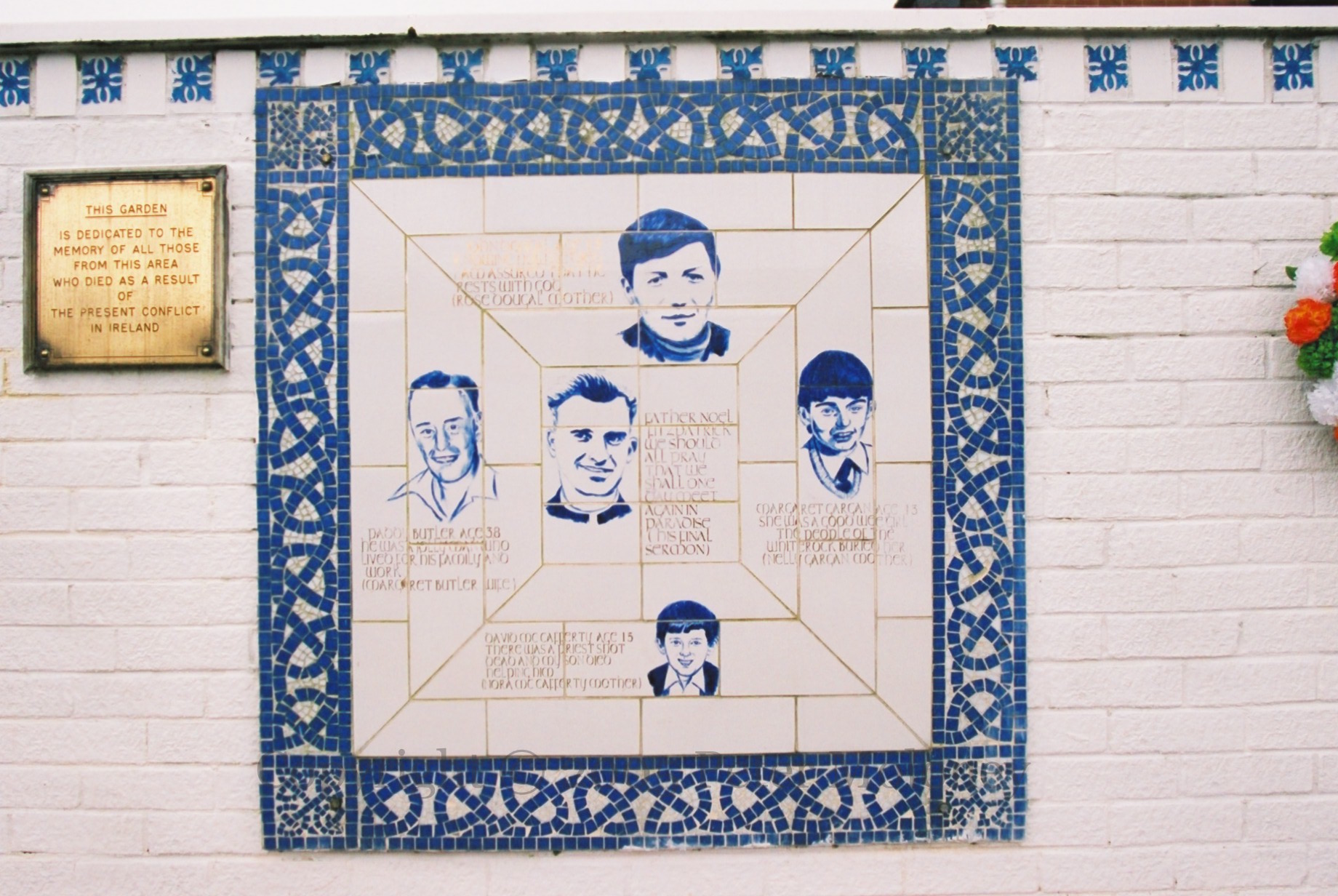 British Army snipers ensconced into Corry’s timber yard shot dead five people, including three teenagers, from Springhill and Westrock on the summer night of July 9th, 1972. All were unarmed. These images are from the Westrock-Whiterock memorial gardens (“gairdíní cuimhneacháin”) in Westrock Drive, west Belfast.