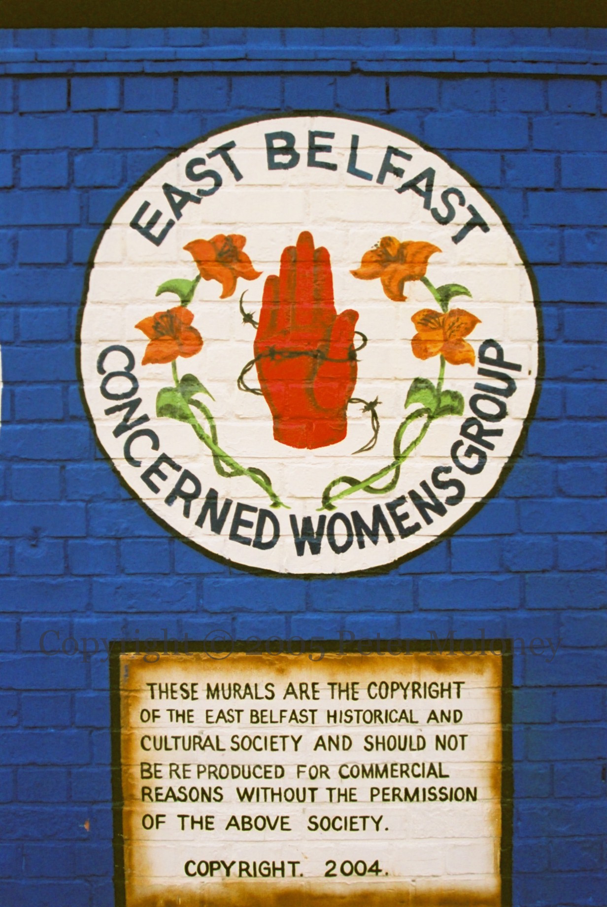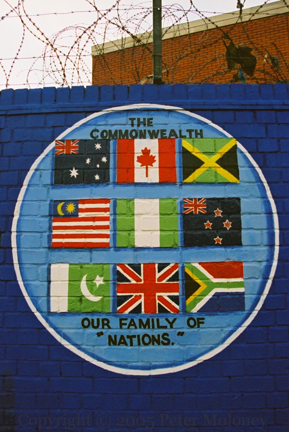 With the emblems of Ballymacarrett LOL N0.6, Ballymacarrett Royal Black No. 4, the East Belfast Concerned Womens Group, and a grid of Commonwealth countries’ flags.