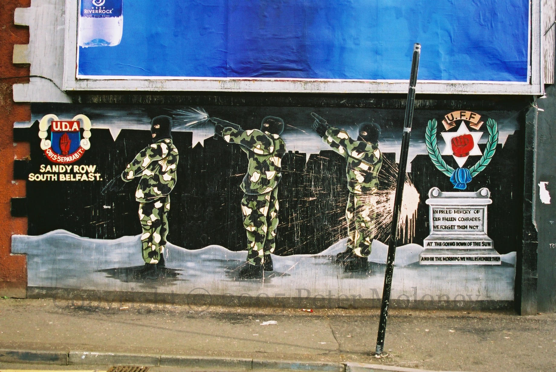 In Proud Memory 2005-03-212025-02-27Extramural Activity 2005 image of UDA/UFF funeral volley mural in Boyne Court, Belfast, seen previously in 1997 and 2001. Click image to enlargeCopyright © 2005 Peter MoloneyM02406 [M06428] [M06429] [M06430] Share this: Click to share on X (Opens in new window) X Click to share on Facebook (Opens in new window) Facebook Like Loading... Related
