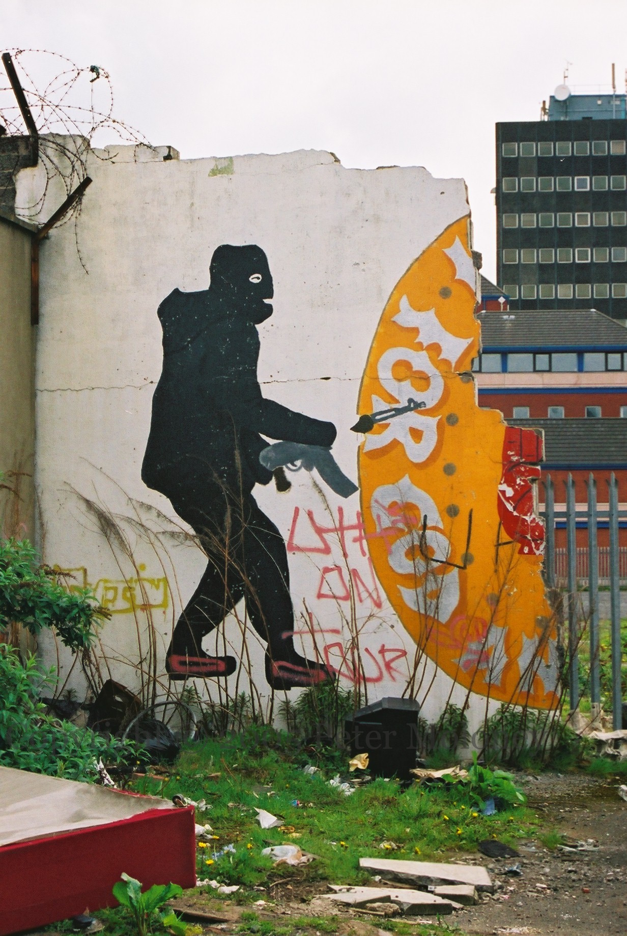 UVF 2005-03-222025-02-27Extramural Activity The UVF emblem is broken in two. For the whole, see C01427. Wellwood Street, Sandy Row, south Belfast Click image to enlargeCopyright © 2005 Peter MoloneyM02407 Share this: Click to share on X (Opens in new window) X Click to share on Facebook (Opens in new window) Facebook Like Loading... Related
