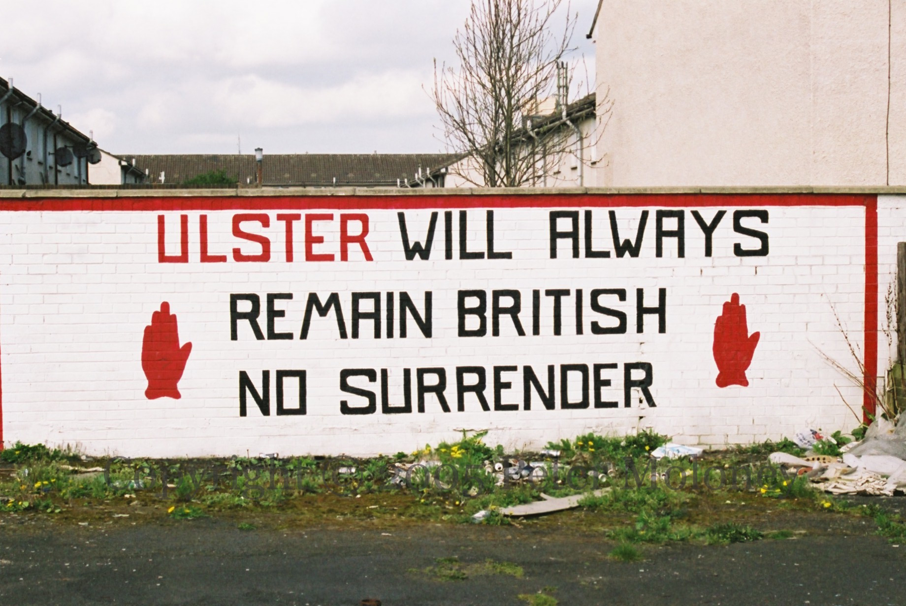 Ulster Will Always Remain British 2005-04-182025-02-27Extramural Activity “Ulster will always remain British – No surrender” UYM mural just off Shankill Parade, west Belfast. Click image to enlargeCopyright © 2005 Peter MoloneyM02463 M02464 Share this: Click to share on X (Opens in new window) X Click to share on Facebook (Opens in new window) Facebook Like Loading... Related