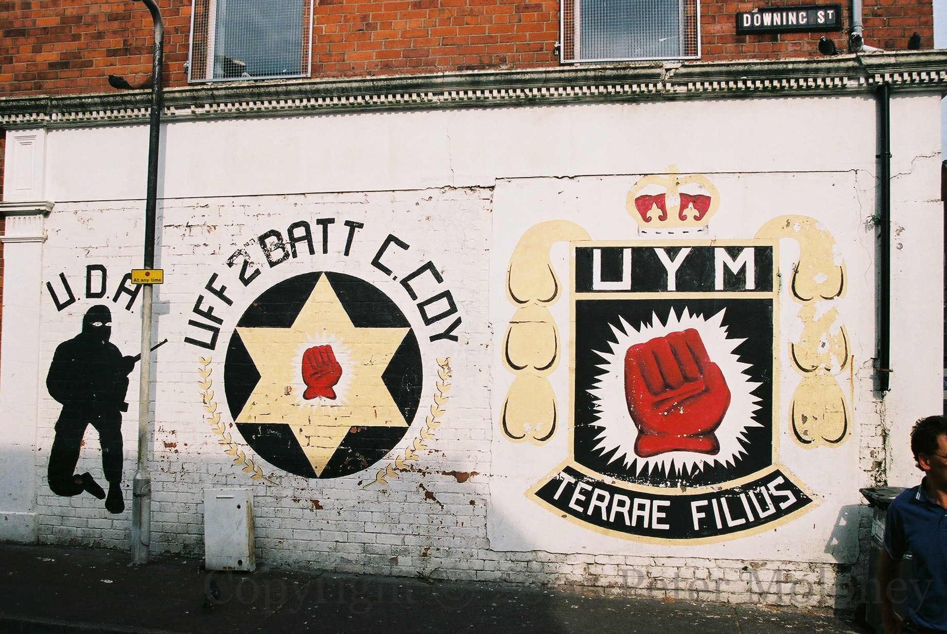 UFF 2 Batt C Coy 2005-04-192025-02-27Extramural Activity UDA west Belfast C Coy (Adair’s company) mural in Downing Street, Belfast. Click image to enlargeCopyright © 2005 Peter MoloneyM02462Copyright © 2008 Peter MoloneyM04265 M04266 M04267 Share this: Click to share on X (Opens in new window) X Click to share on Facebook (Opens in new window) Facebook Like Loading... Related