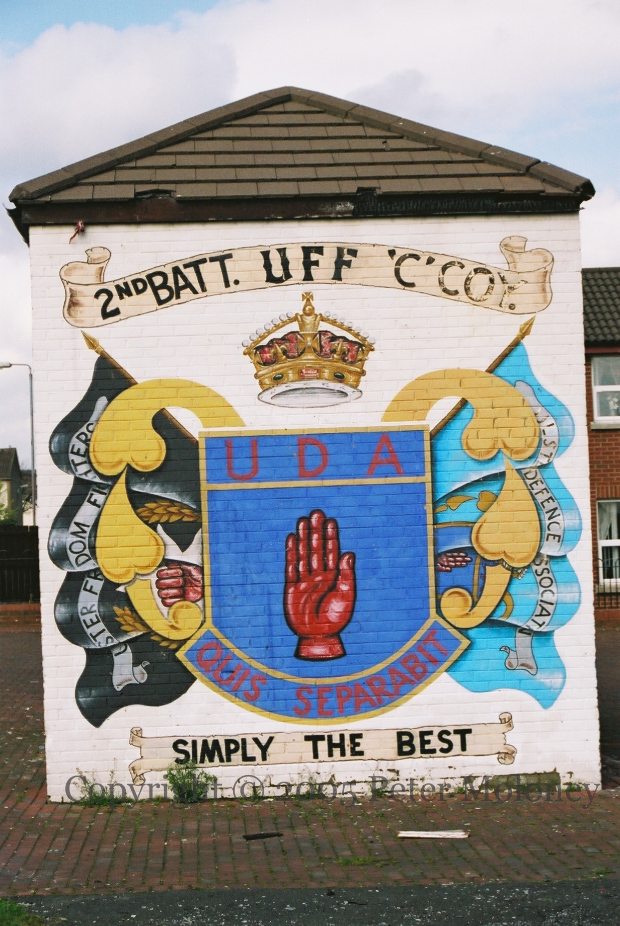 Simply The Best 2005-04-202025-02-27Extramural Activity 2nd battalion, C company (lower Shankill, west Belfast). UDA and UFF flags flanking the UDA emblem. Boundary Walk, walk Belfast Click image to enlargeCopyright © 2005 Peter MoloneyM02466 M02465 M02467 M02469 Share this: Click to share on X (Opens in new window) X Click to share on Facebook (Opens in new window) Facebook Like Loading... Related