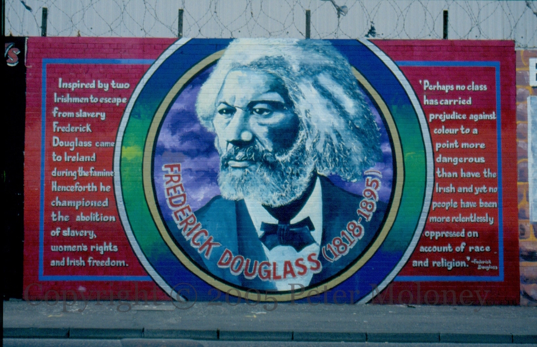 Frederick Douglass, 1818-1895. “Inspired by two Irishmen to escape from slavery Frederick Douglass came to Ireland during the famine. Henceforth he championed the abolition of slavery, women’s rights and Irish freedom.” “Perhaps no class has carried prejudice against colour to a point more dangerous than have the Irish and yet no people have been more relentlessly oppressed on account of race and religion. (Also by Douglass, and which would have made an apt quote for the mural: “I prayed for twenty years but received no answer until I prayed with my legs.”)