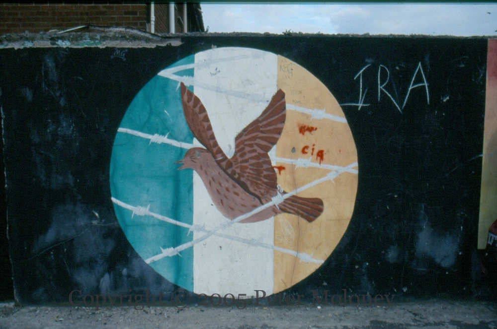 Flyers flutter among the watch towers of Long Kesh/Maze/H-Blocks reading “Victory to the blanketmen”, “Support the hunger strike”, Political status now”.
