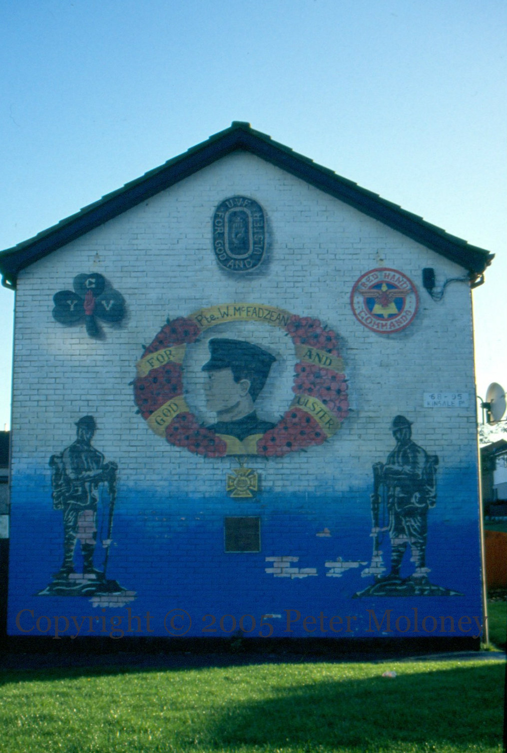 Billy McFadzean won the Victoria Cross for “conspicuous bravery” at the Somme on July 1st, 1916, when he threw himself on a box of grenades that had fallen into the trench, with two pins becoming dislodged. The emblems of the UVF, YCV, and (modern) RHC are added.