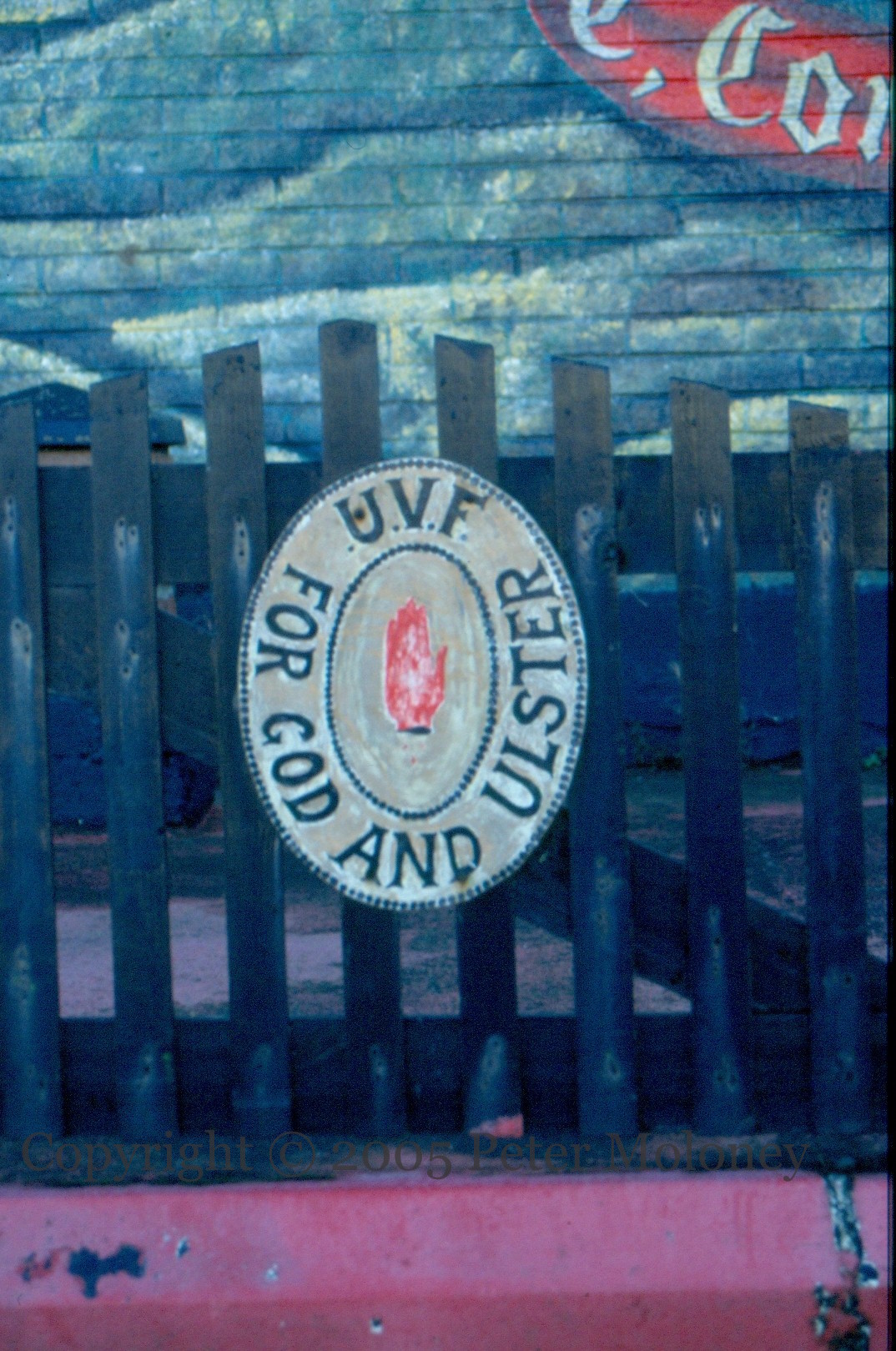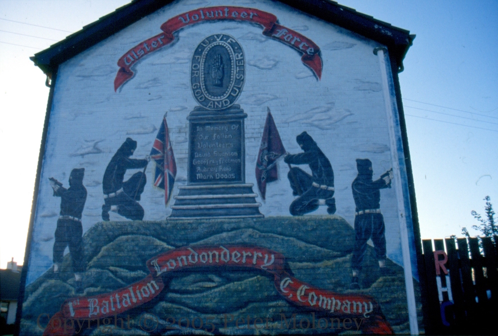 Londonderry 1st Battalion C Company 2005-06-262025-02-28Extramural Activity Londonderry UVF 1st battalion C company memorial mural in Sperrin Park in the Caw, with UVF and YCV boards on the fence in front, and RHC letters off to the side. Click image to enlargeCopyright © 2005 Peter MoloneyM02620 [M02625] M02621 M02624 Share this: Click to share on X (Opens in new window) X Click to share on Facebook (Opens in new window) Facebook Like Loading... Related