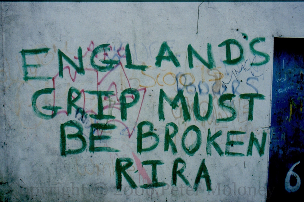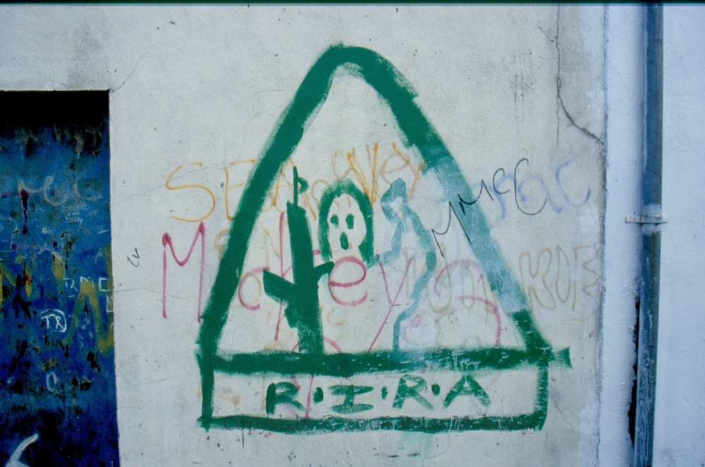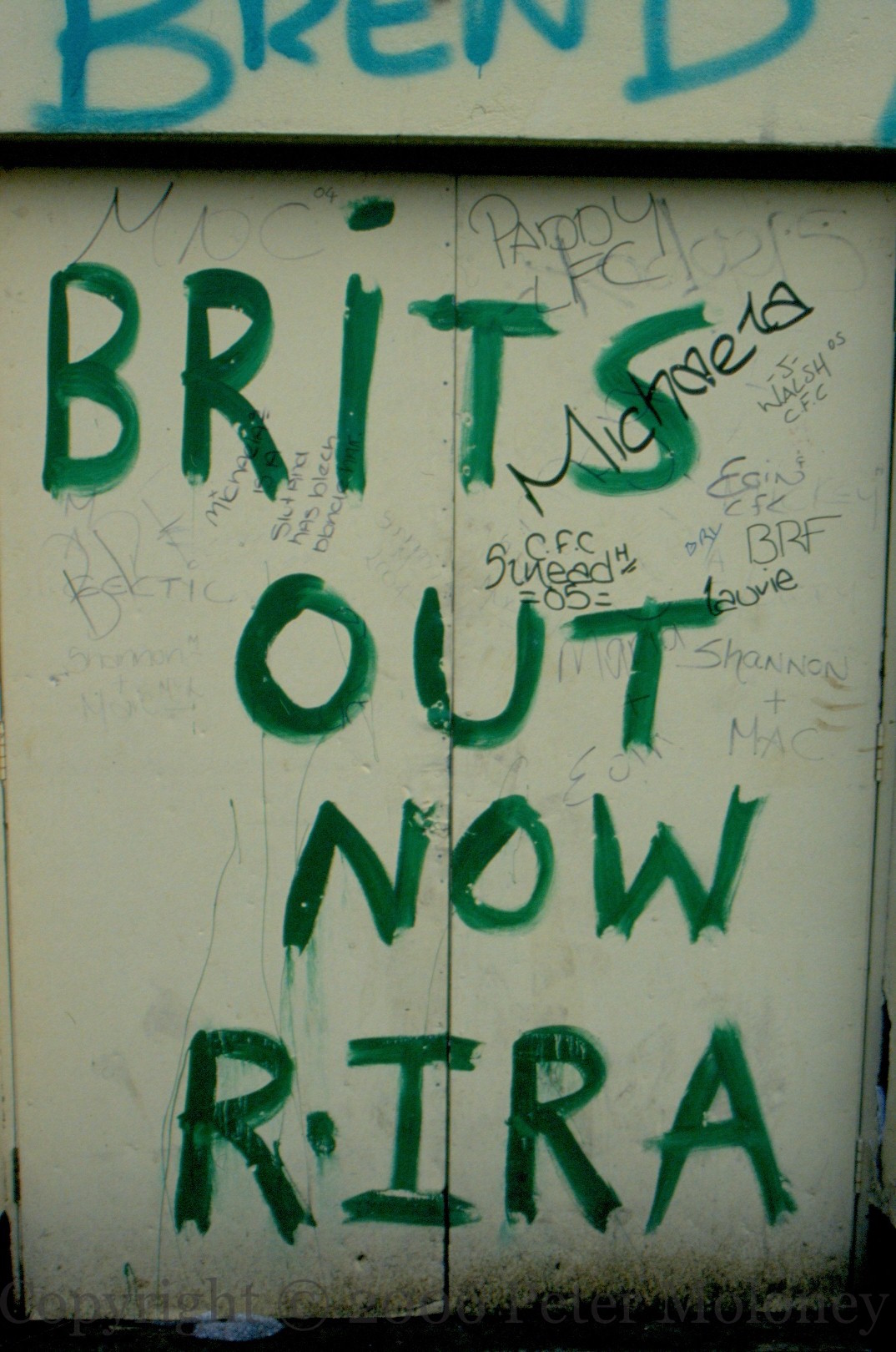 England’s Grip Must Be Broken 2006-01-142025-03-02Extramural Activity Four pieces of RIRA graffiti (one a crude drawing) from Rossville Street, Derry, including “Provo sell out” and “Brits out now”. Click image to enlargeCopyright © 2006 Peter MoloneyM02698 M02696 M02697 M02699 Share this: Share on X (Opens in new window) X Share on Facebook (Opens in new window) Facebook Like Loading... Related